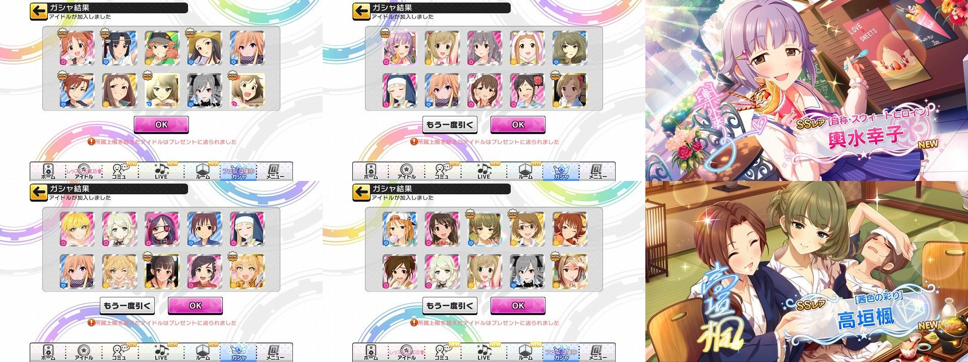 副産物として更に4人SSRが増えましたが1点狙いという危険な事した割には上手くペアが揃ったり楽しみも増えたのでセーフ。