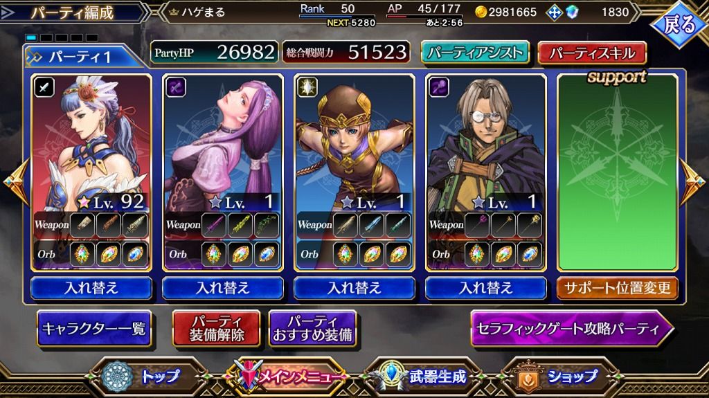 高難易度のタワー型クエストもクリアし、欲しい旧キャラも揃ったのでこのゲームは後はもうかなり気楽に進めていける感じに。