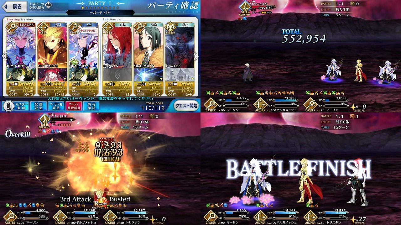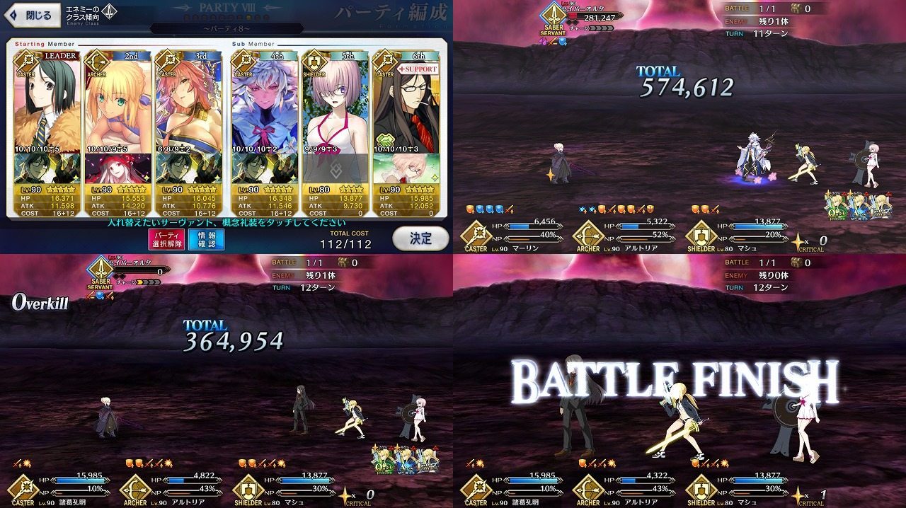 メモクエの特異点Fは適当な編成で行ったら即死だったのでガチ編成にしてクリア。その後別パターンでも試して少し短縮。