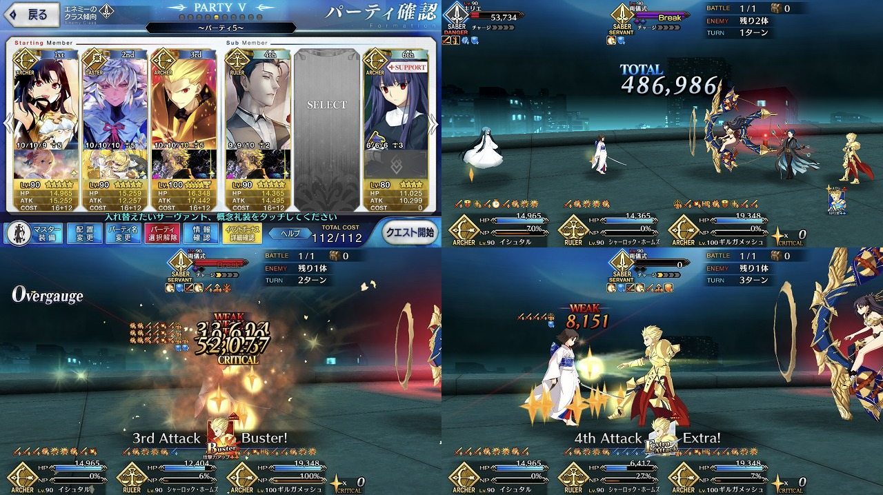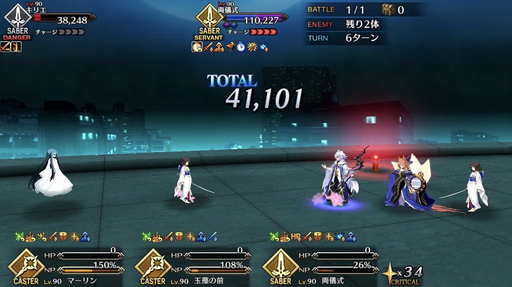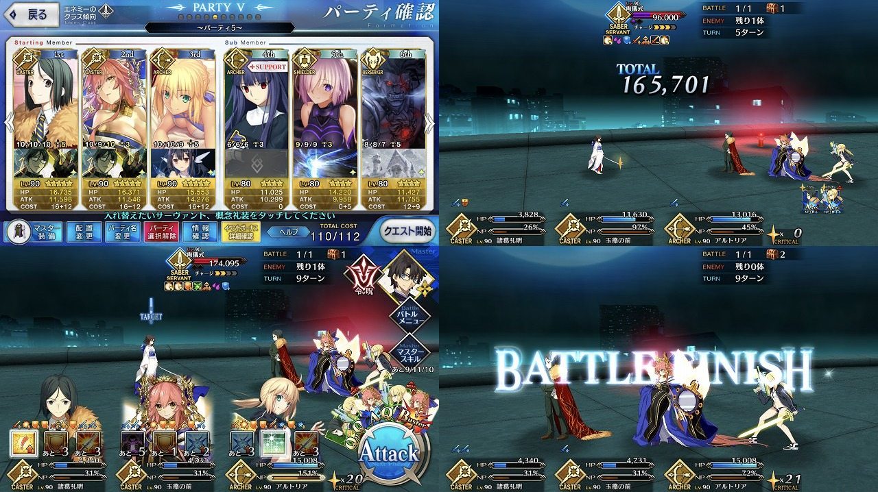 ・今回の高難易度は初見は相性とか考えずに剣式メインで行ったら相手も剣式が出てきて普通に負けたので、2回目で弓王メインにして令呪無しスタメンのままクリア。