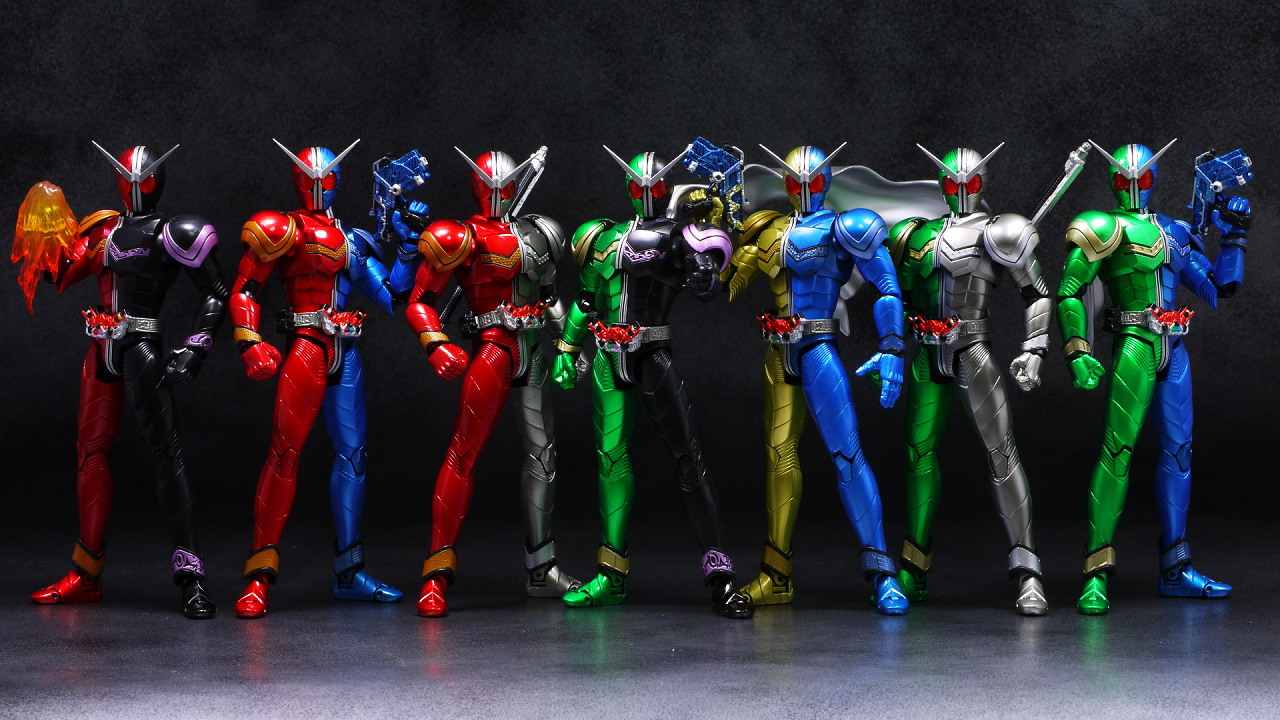 集合写真で終わり。以上、S.H.フィギュアーツ 仮面ライダーW サイクロントリガー&サイクロンメタルのレビューでした。