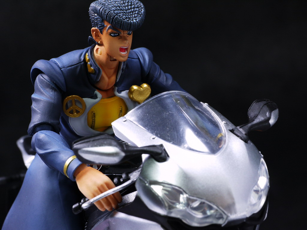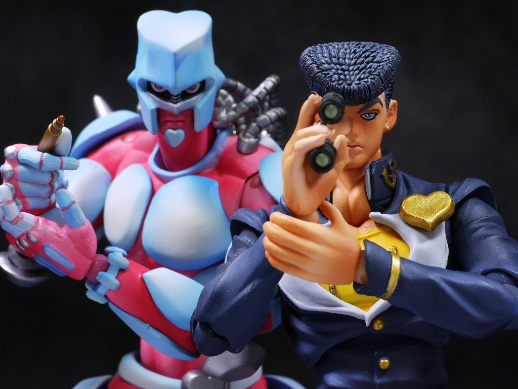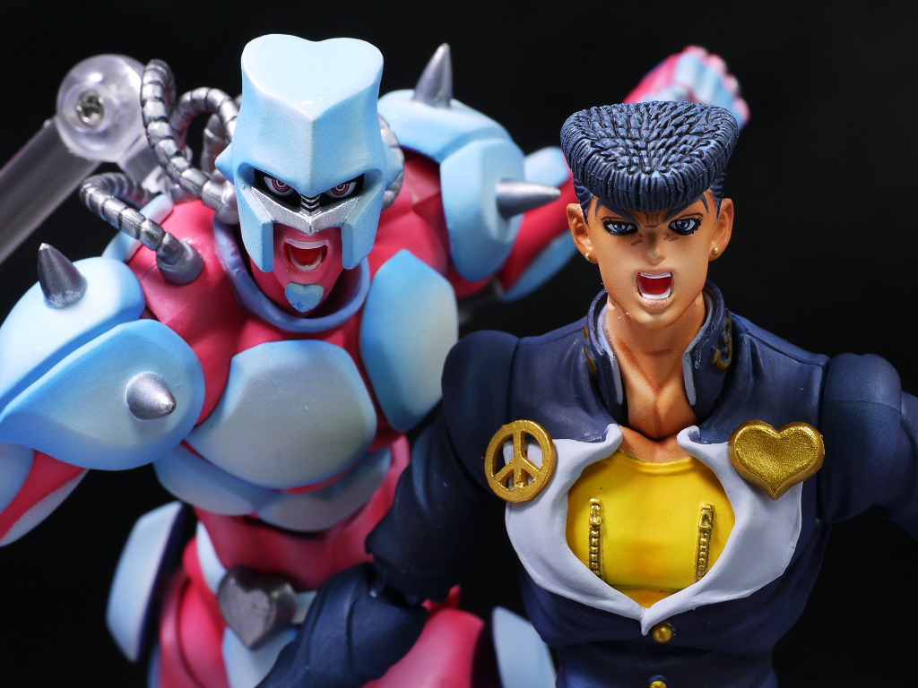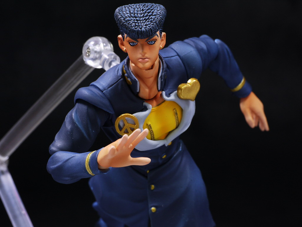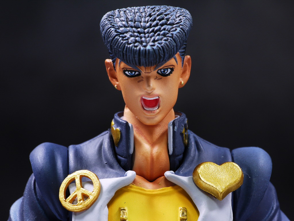 仗助は承太郎やジョルノのようなクールなカッコよさはないですが、ゲームが趣味など普通の人っぽい部分が多くて、とっつきやすく感情移入しやすいお気に入りのキャラなので超像可動というめちゃ出来の良いシリーズで出てくれて有り難かったです。
