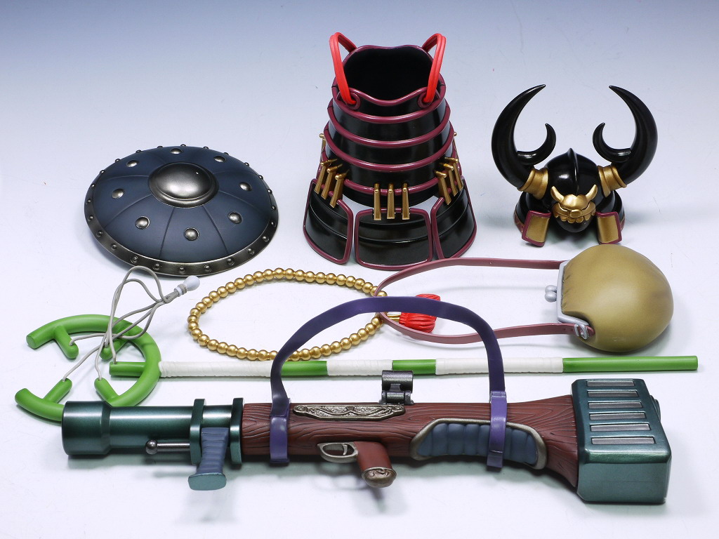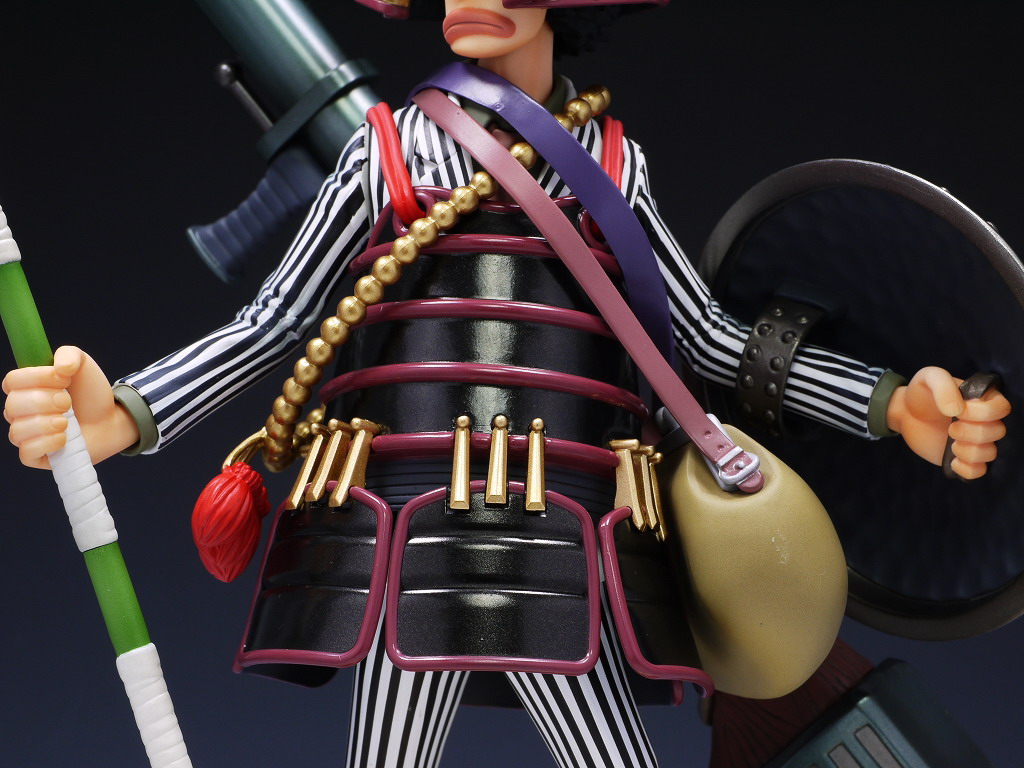 メガハウスのPOPワンピースシリーズは色々ギミックが凝ってるものが多いですが、今回のウソップも武器やら防具やらが大量でかなりの物でした。