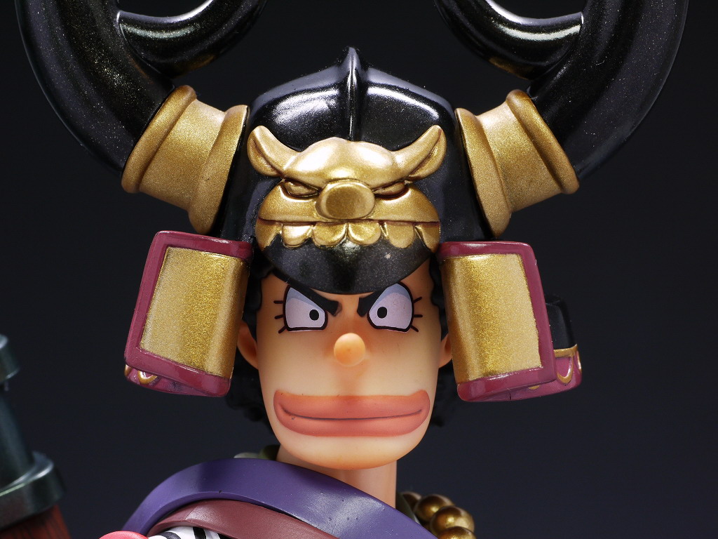 顔。かなりボリュームのある兜を装備。ちなみに首はルフィと同じくボールジョイントになってます。