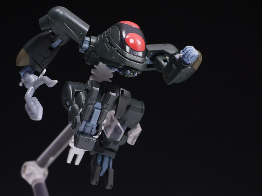 この小ささで肘や膝がちゃんと動き、武器も3種付属するなど最小サイズながらも遊び甲斐もばっちりな物に仕上がってました。