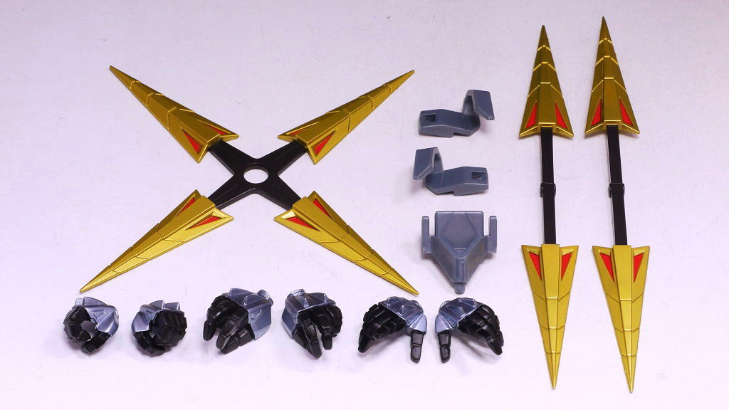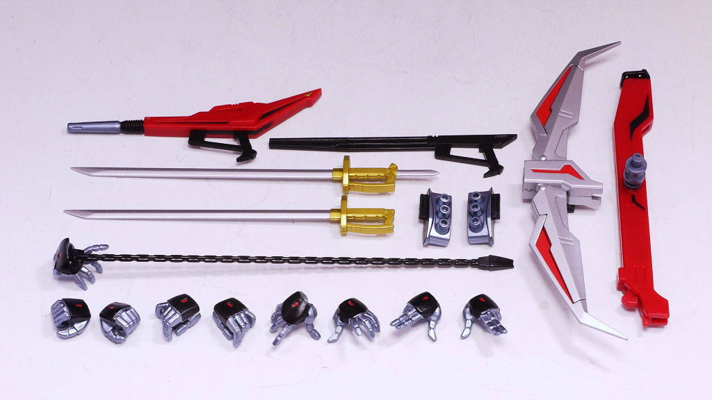 各部位など。黒獅子付属の物はロボットらしいかっちりした体型でしたが、こちらは人間っぽい曲線的なラインが多め。