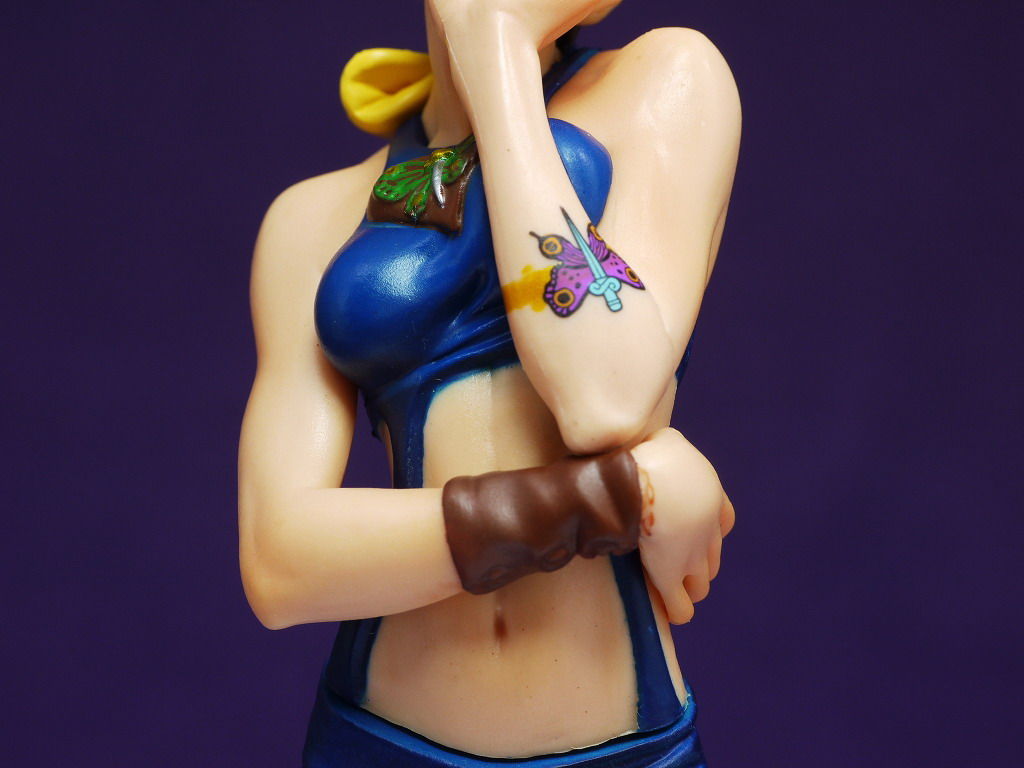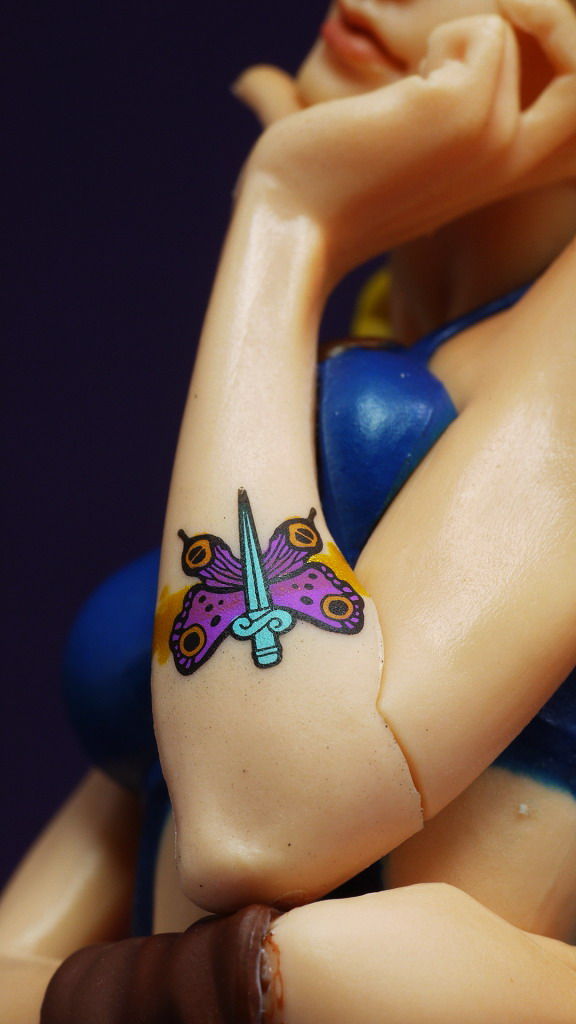 左腕にはタトゥー。膝から下の謎のデザインもきっちり再現。