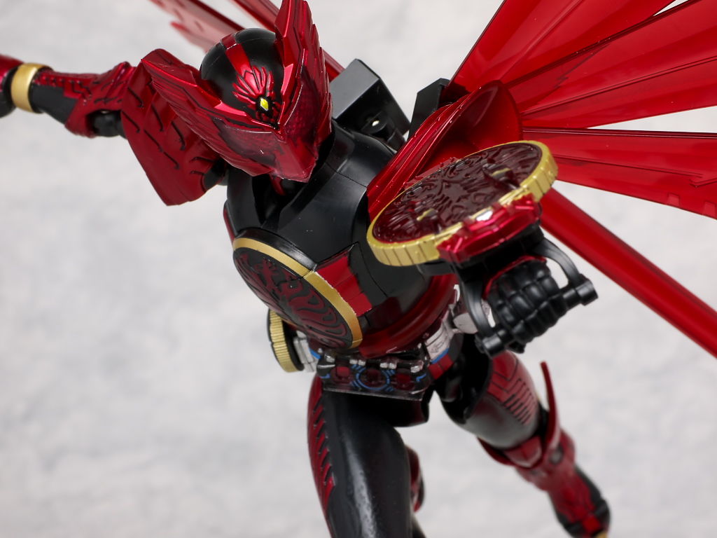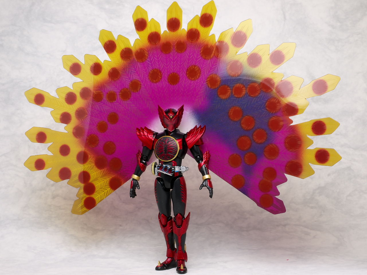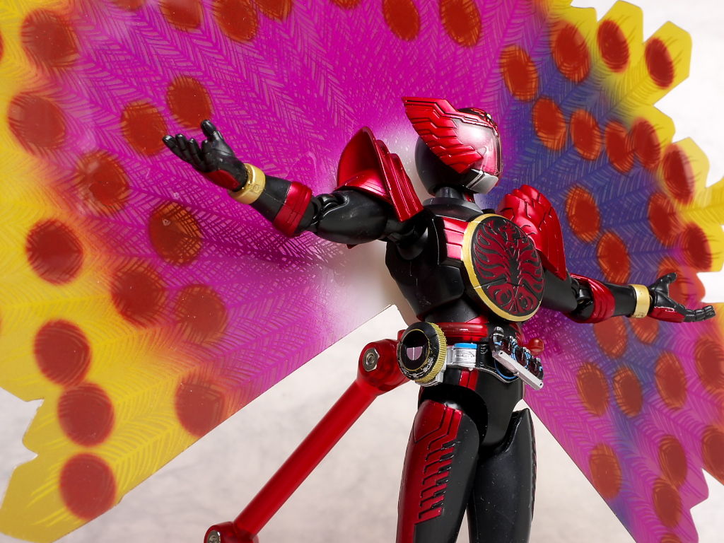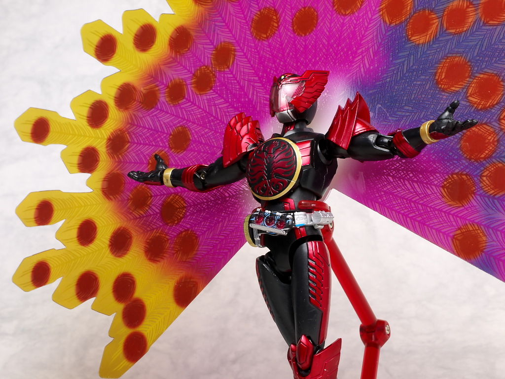 クジャク羽を付けた状態。劇中だとウイングを広げた状態でクジャク羽が出てましたが今回のセットではどちらかの選択式。