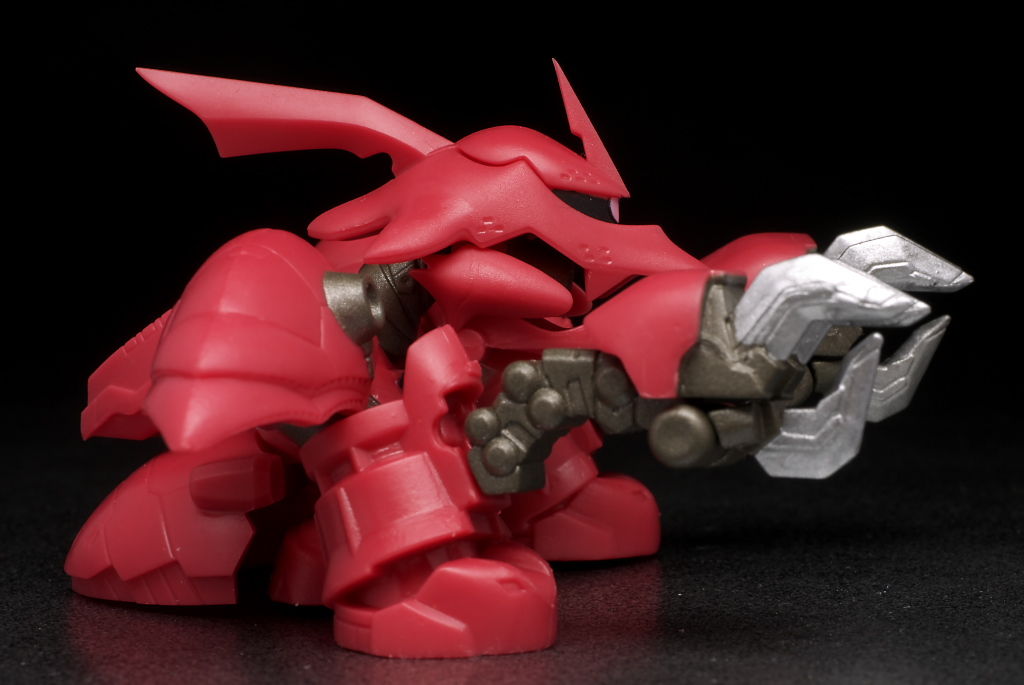 首と肩、クロー部分などが可動。ただ腕をあげると底の平たい面が見えて見栄えはいまいち。