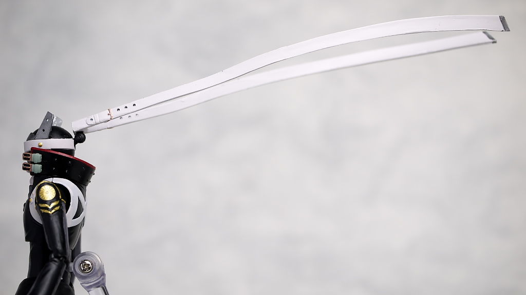 後頭部には可動式のはちまき。上下左右に動き、可動の幅は広いですが関節の強度が弱くへたれやすいです。