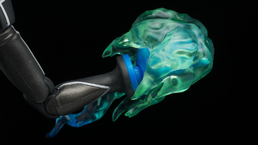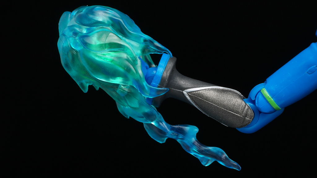 炎付きの手首パーツ(大)。そこそこ重量あり手首の角度などは制限されますが保持などは安定してました。