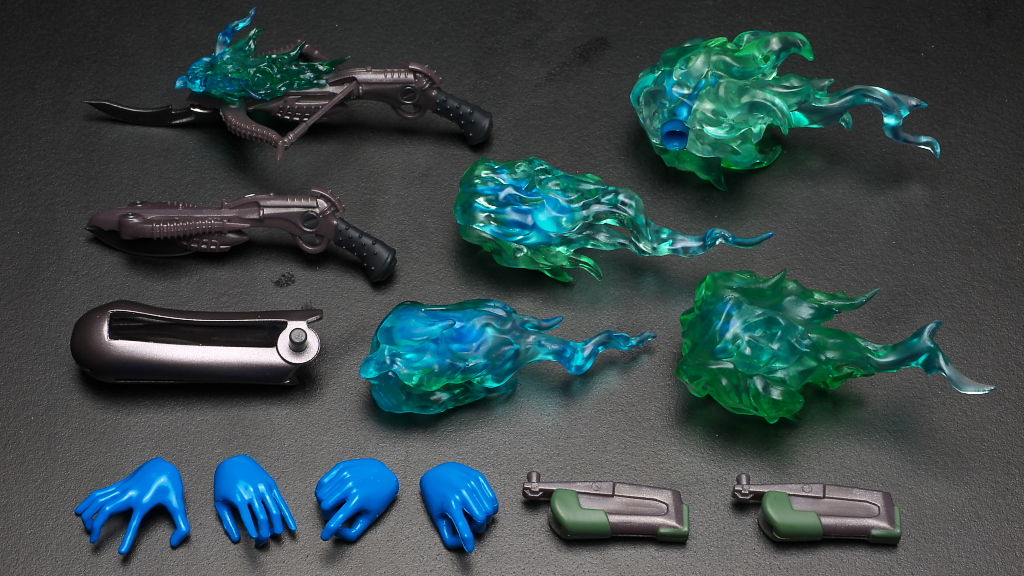 手に取り付ける炎パーツの中にもそれぞれ手首パーツが入ってるので今回は平手がかなり豊富。