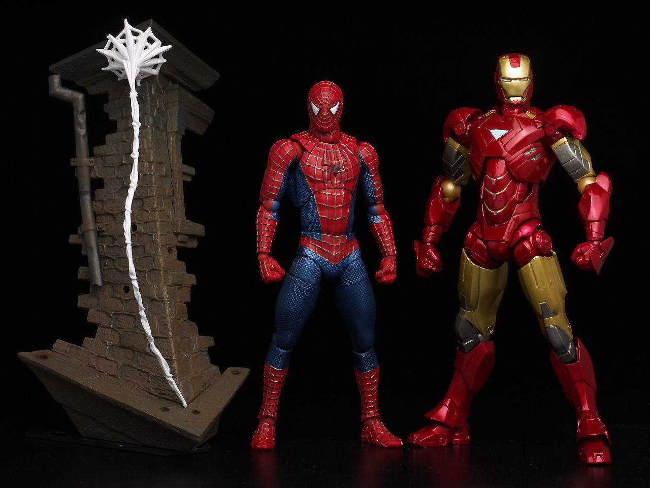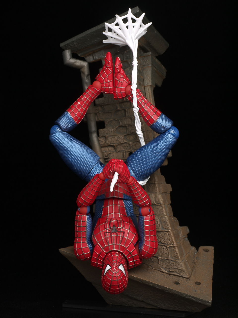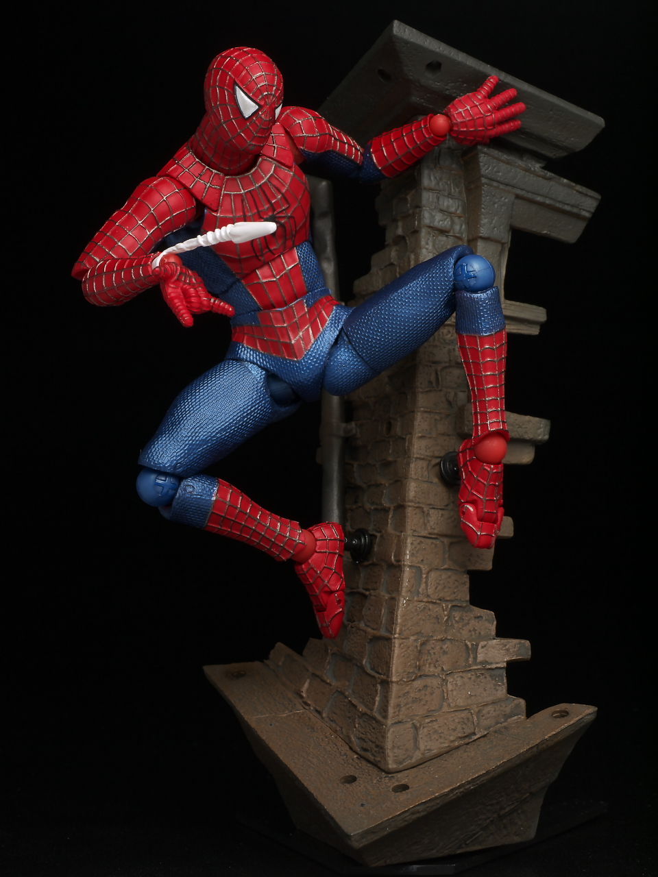 リボルテックにしては珍しく太腿ロールもあるおかげでスパイダーマン独特の足の開き方もバッチリ再現でき、使い勝手のいい飾り台もついてるので遊びの幅も非常に広い仕様になってました。