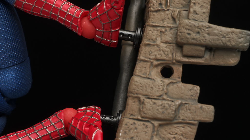 壁にはいくつか穴があり専用のジョイントを使ってスパイダーマンの足裏と接続することが出来ます。