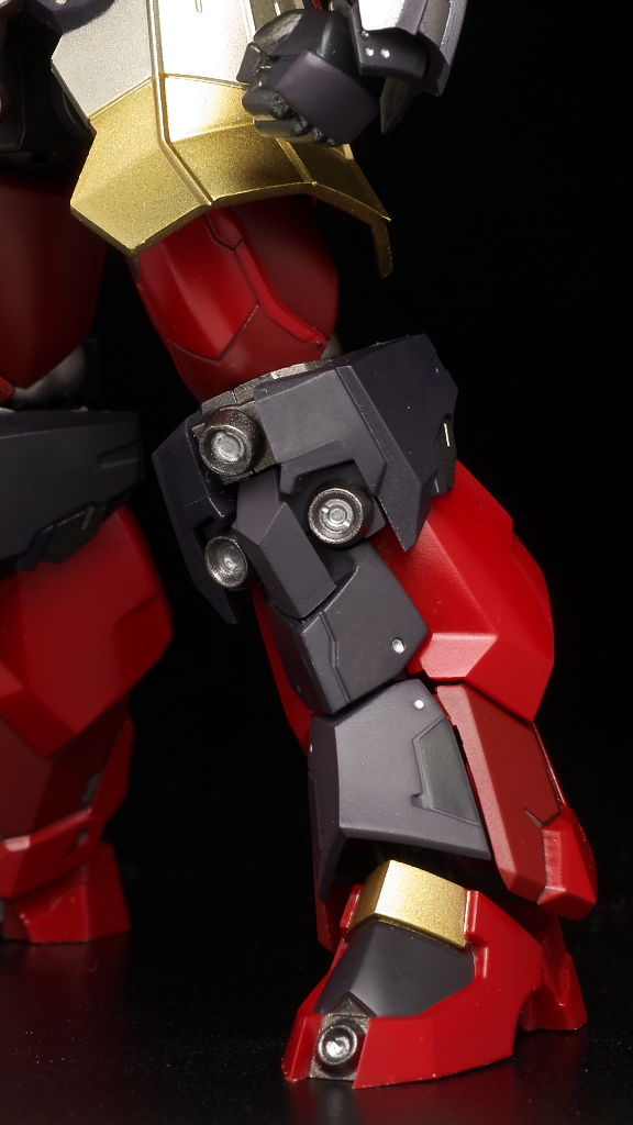 太腿と膝の装甲は膝を曲げると連動してスライドする仕組みに。