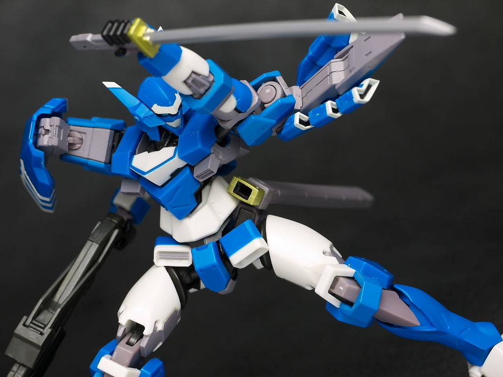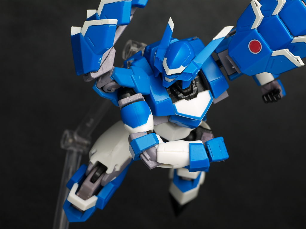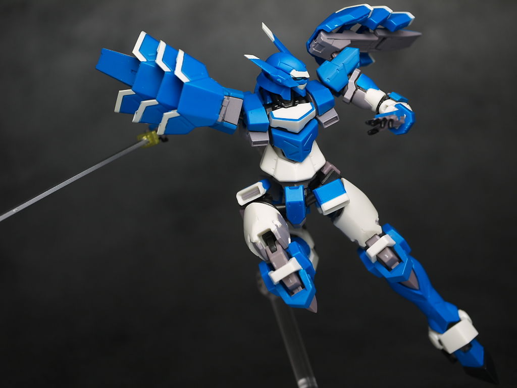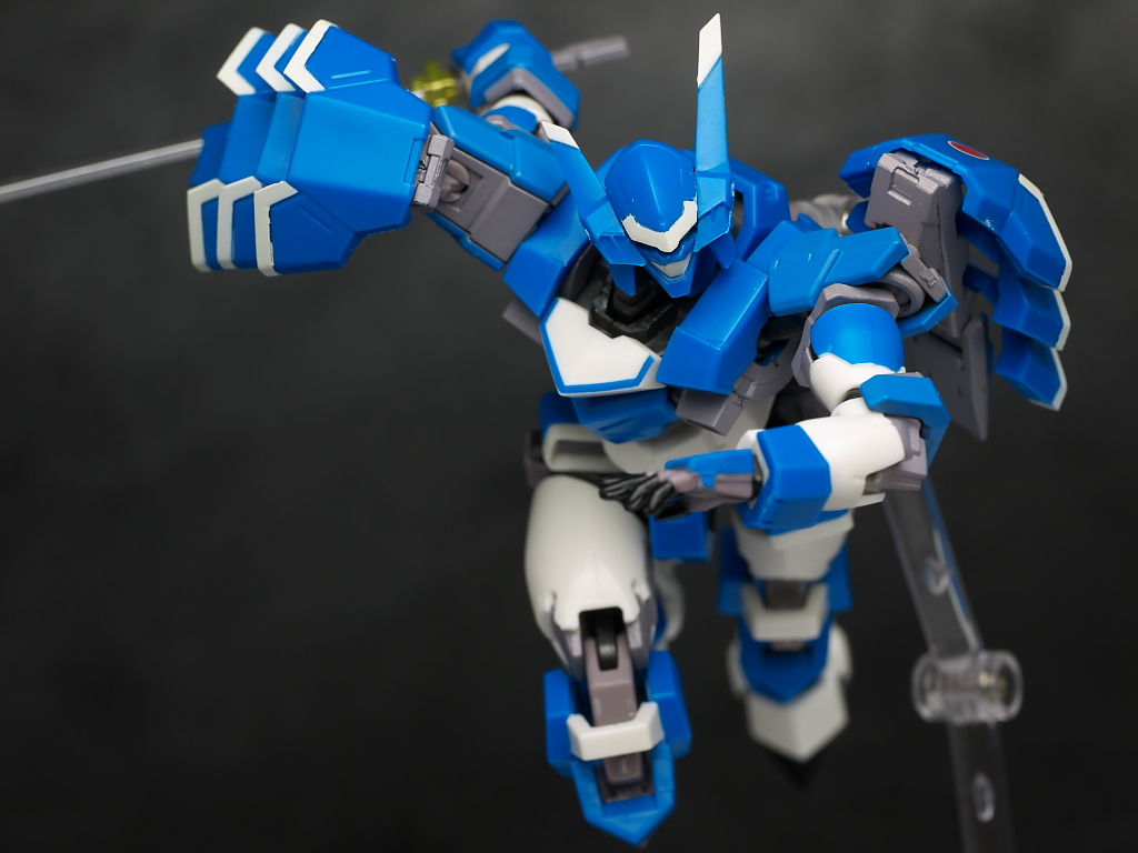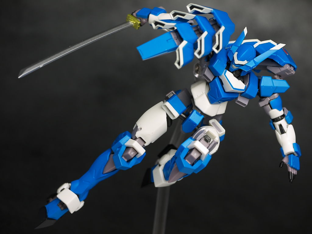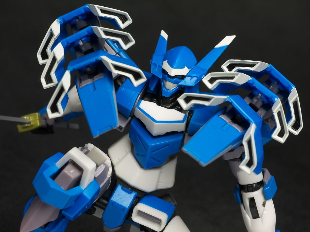 可動に関しても動く箇所が多すぎるからか一部関節が緩かったりポロリがあるのが惜しかったものの、肩のアジャイル・スラスタなど作中のイメージ通りの柔軟な動きが出来、単分子カッターの両手持ちもラクで原作シーンの再現はもちろんのこと原作未読の人でも十分に遊び甲斐のある内容になってると思います。