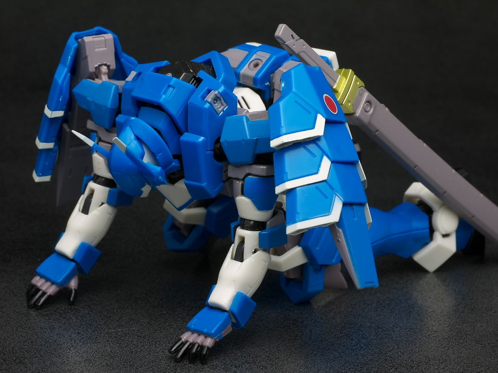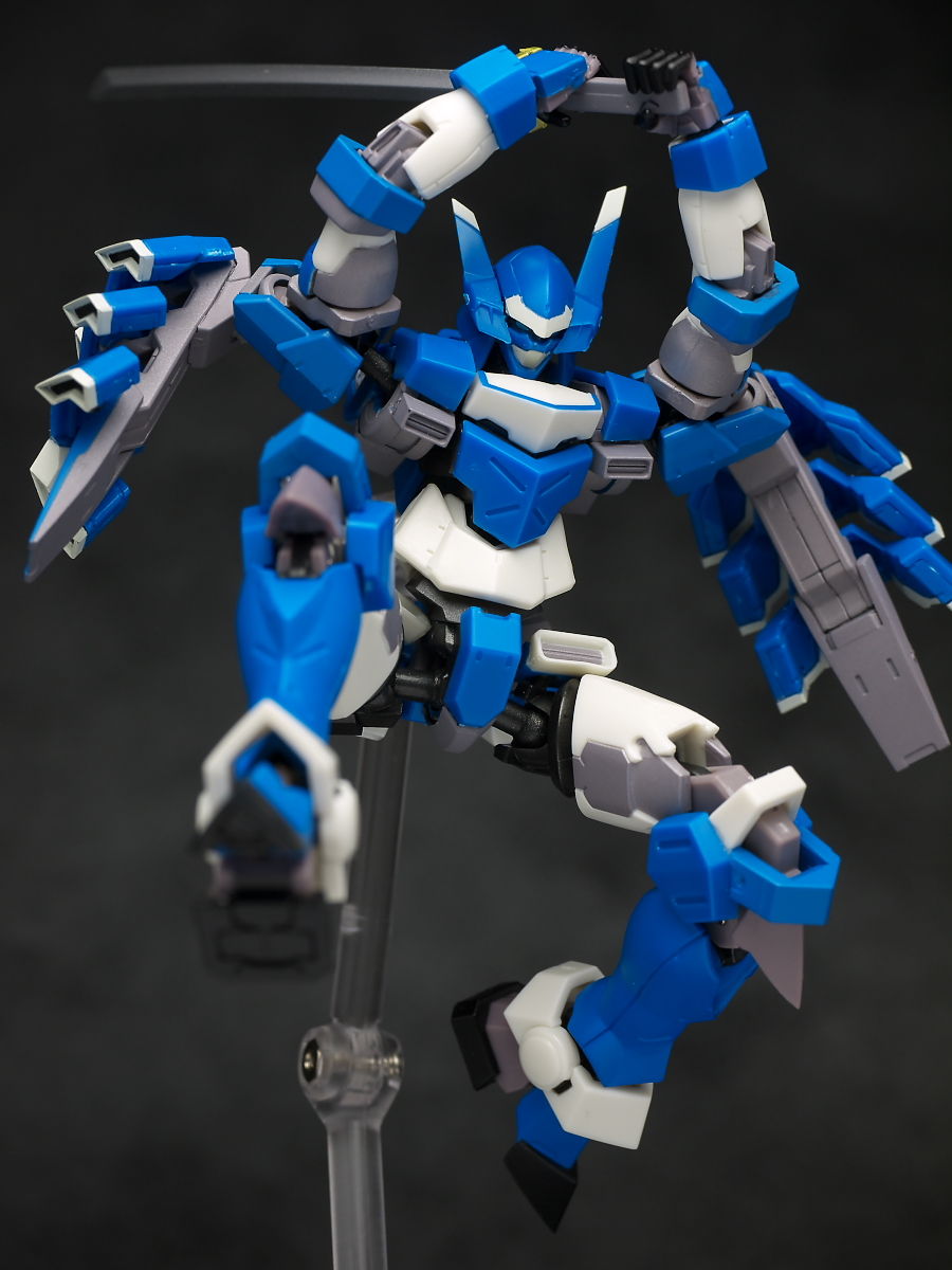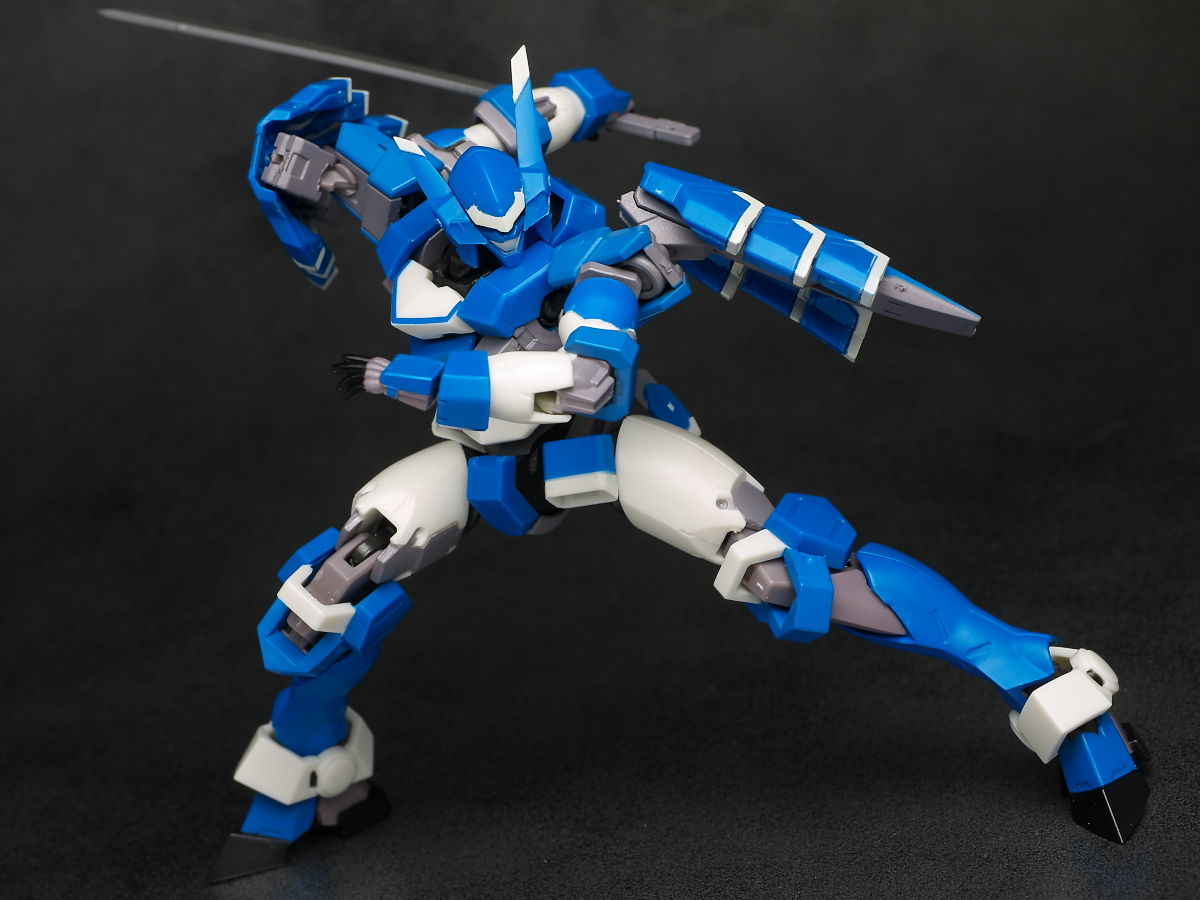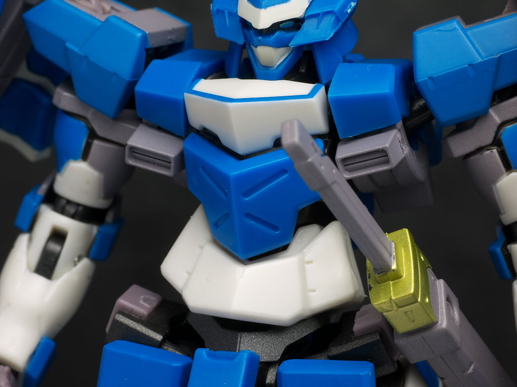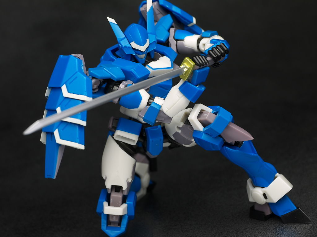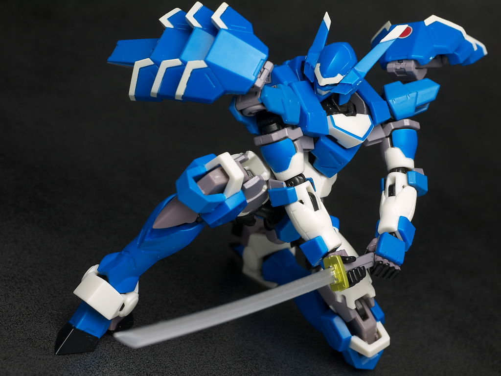 可動に関しても動く箇所が多すぎるからか一部関節が緩かったりポロリがあるのが惜しかったものの、肩のアジャイル・スラスタなど作中のイメージ通りの柔軟な動きが出来、単分子カッターの両手持ちもラクで原作シーンの再現はもちろんのこと原作未読の人でも十分に遊び甲斐のある内容になってると思います。