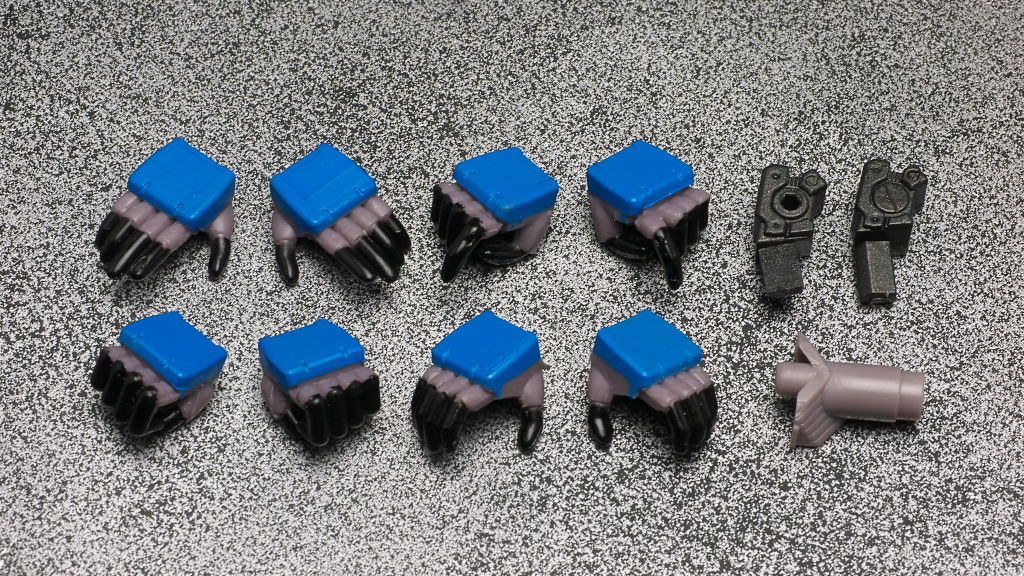 各部位など。造形はエッジの効いたフォルムでかっこいいんですが白の質感はアーバレスト同様ややくすんだ感じが。