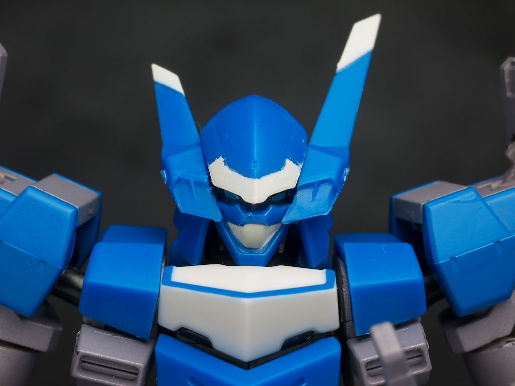 顔。ASは個性的な物が多いですが今回は兜を模したようなデザインで角は左右非対称に。