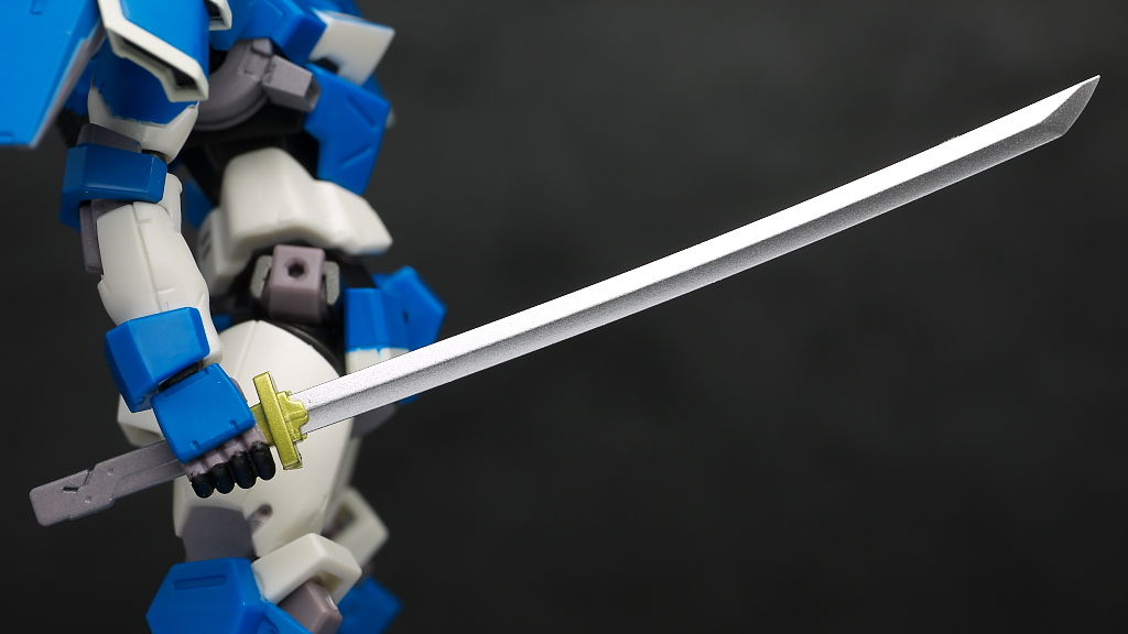 単分子カッターを抜刀した状態。日本刀のような形で特徴的な武器ですが名前は地味。
