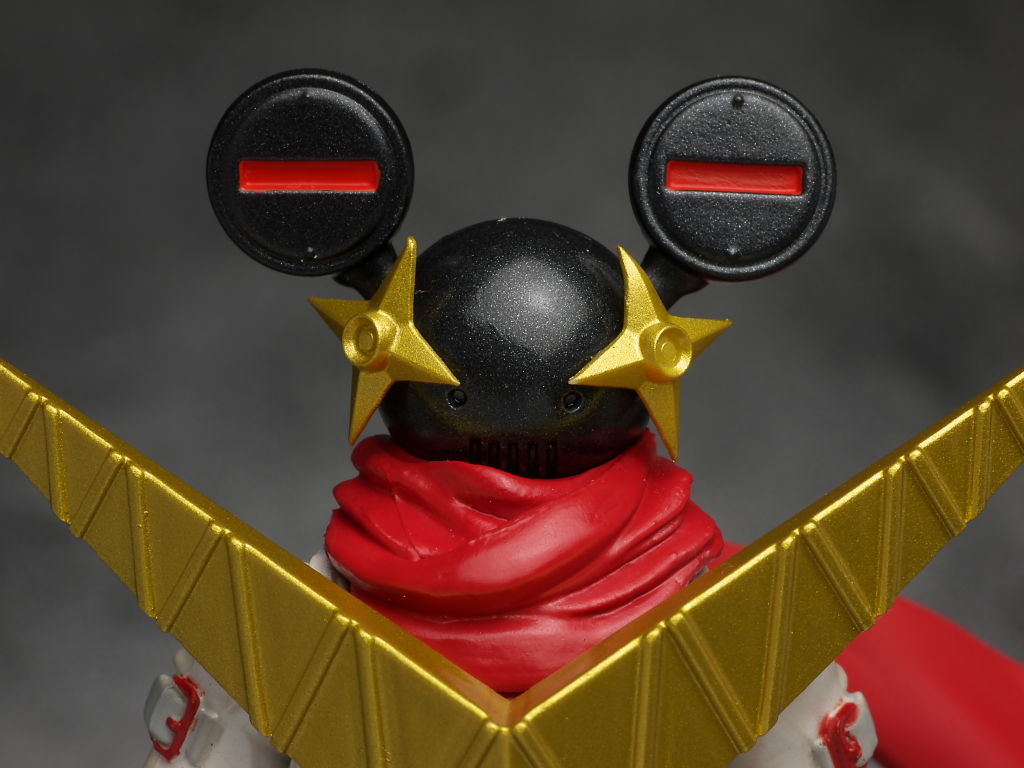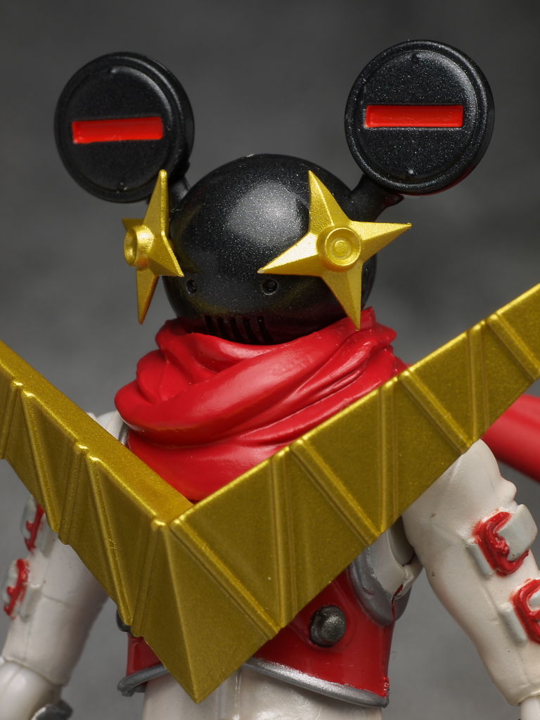 多分手裏剣の部分が目だと思いますが見ようによっては耳の赤い線も目に見えたりで複雑。