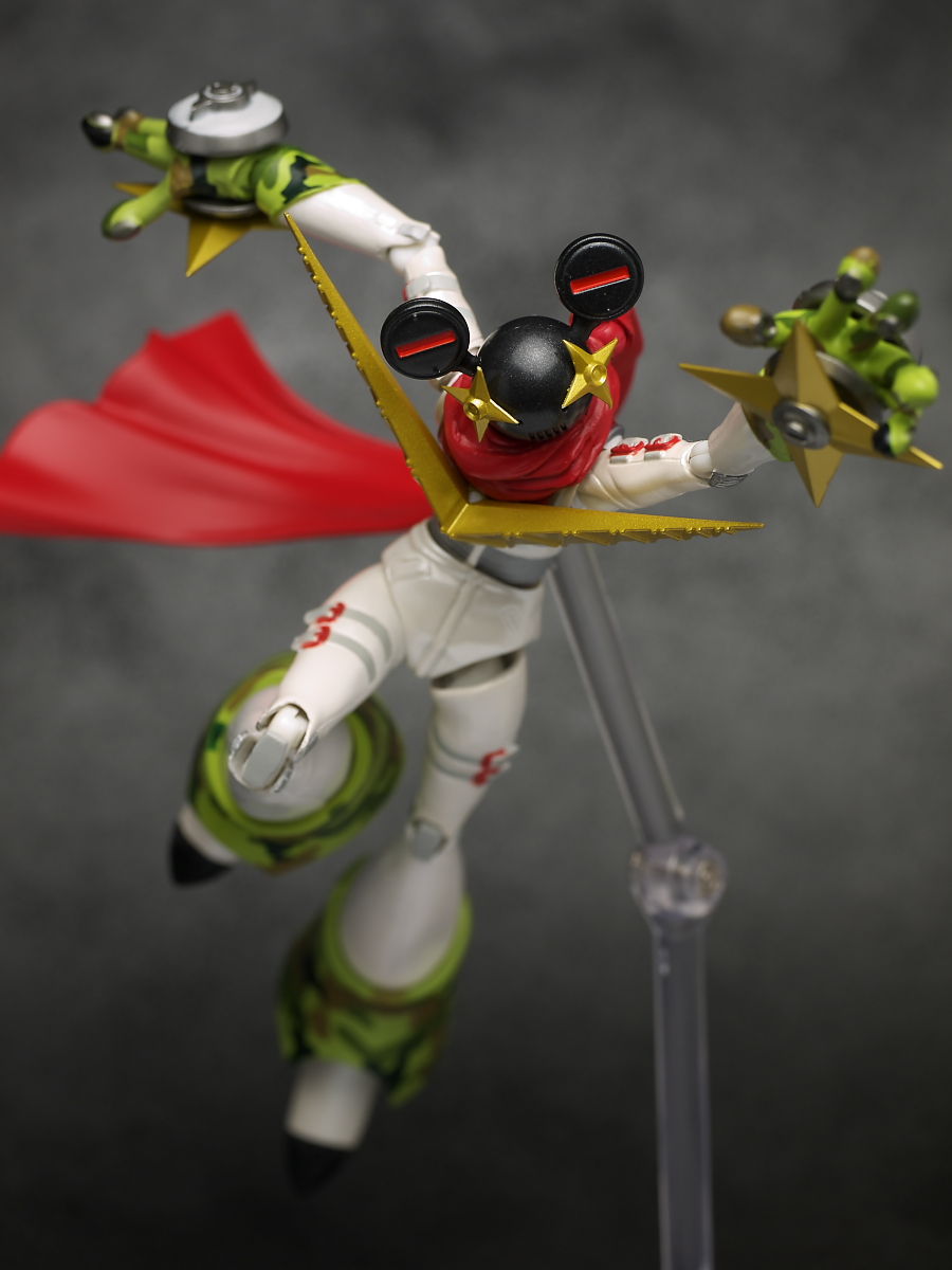 手首パーツ他オプションが一切ないという最近のアクションフィギュアでは珍しいタイプでしたが、その分可動範囲など非常に広く関節の硬さもベストな感じで遊びやすく仕上がってました。