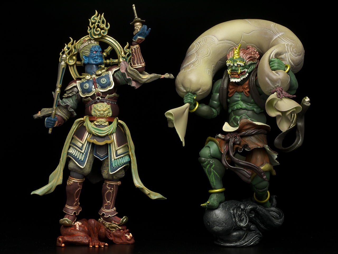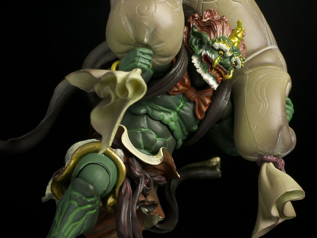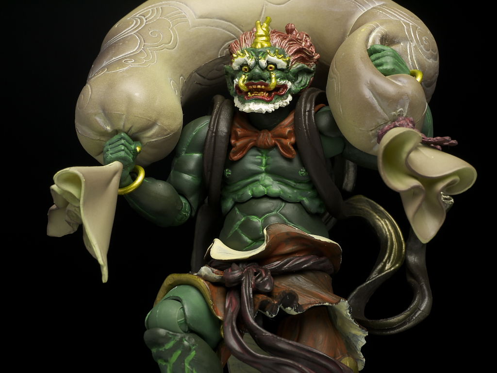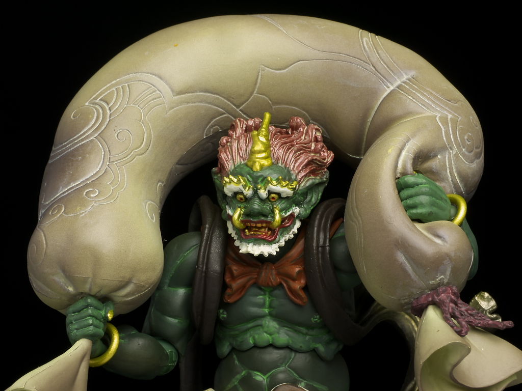 しばらく鬼太郎シリーズが続いたので久々の仏像ですが、クオリティは以前と変わらず造形塗装ともに非常に緻密で、特徴的な風袋なんかもボリューム感があり飾り映えのする仕上がりになってました。