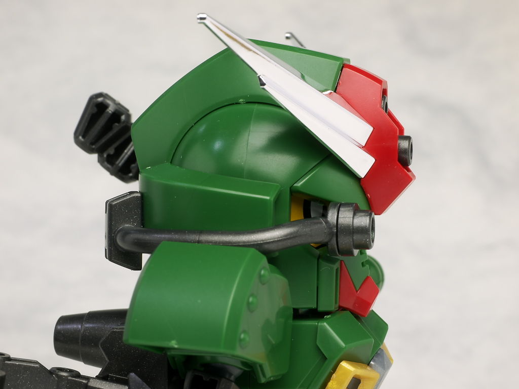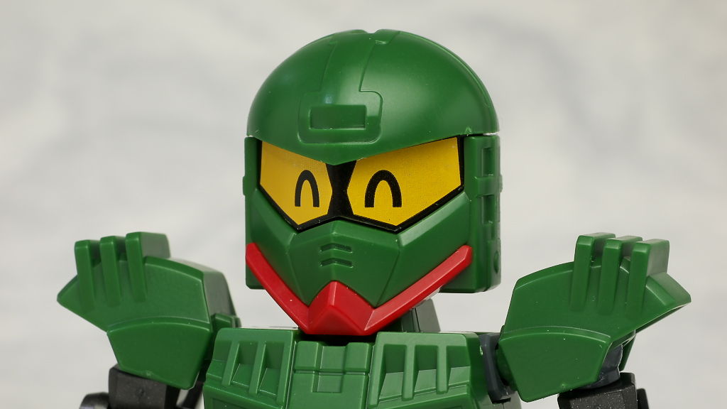 顔。黒い部分は多少シールを使うもののアンテナや額、マスクの赤など細かく色分け。