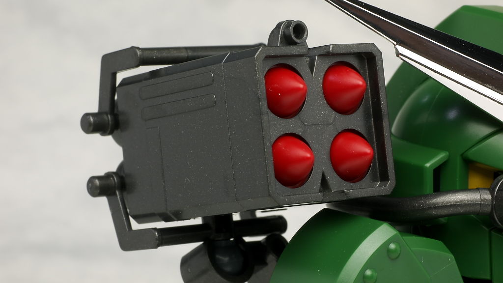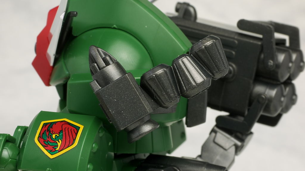 右肩にはミサイルランチャー。弾頭は色分けられてますが個別に引き抜いたりは出来ず。