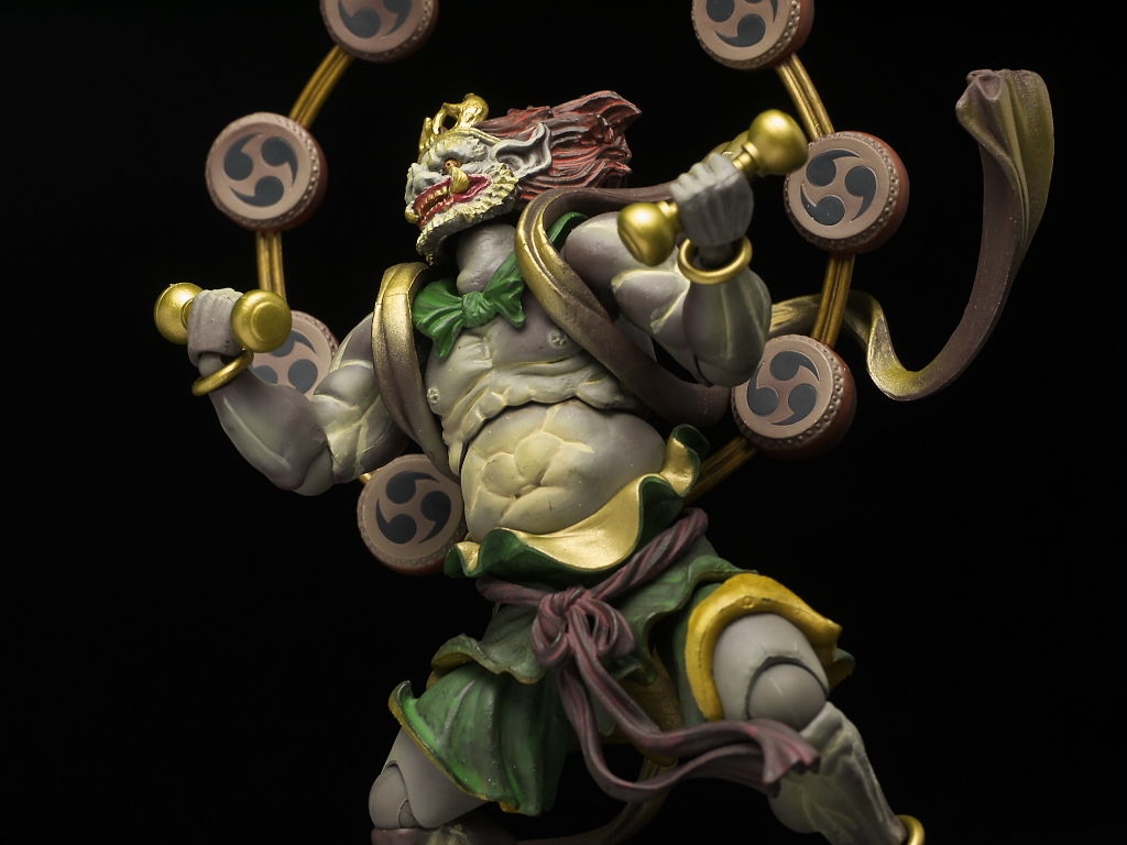 全身。体に関しては風神とほぼ同じですが頭部や色、一番目立つ太鼓などの違いがあるので二番煎じな感は特になし。