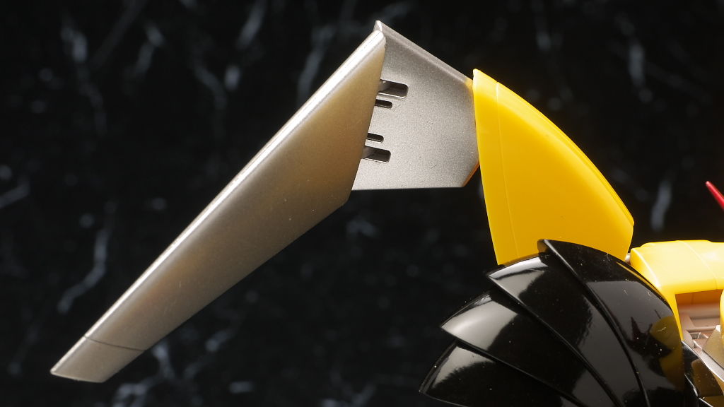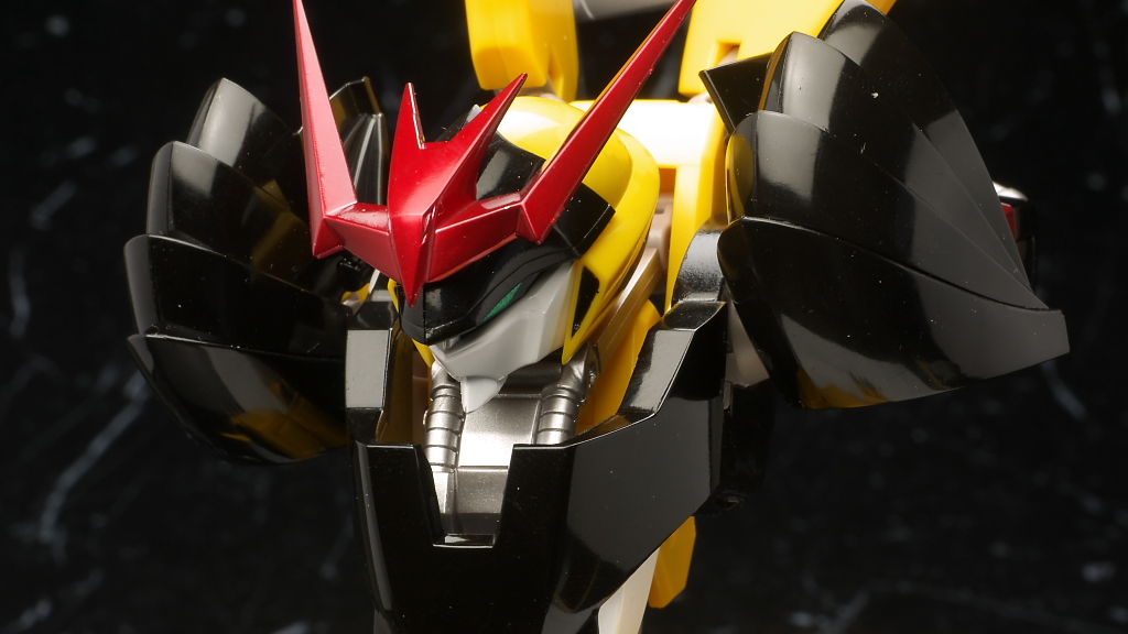 角や目はメタリック塗装。顎なども尖ってて引き締まった顔立ち。