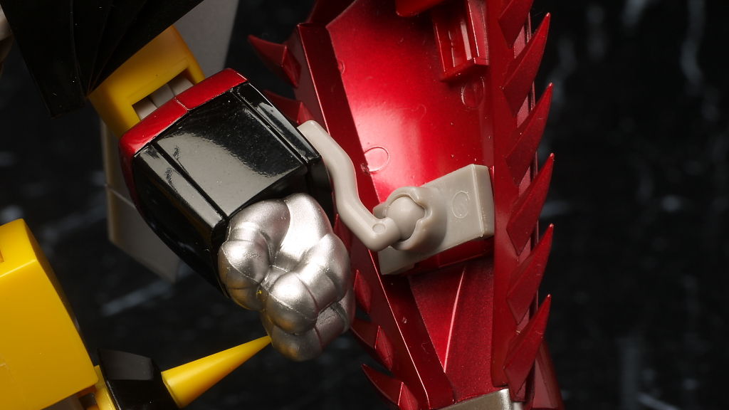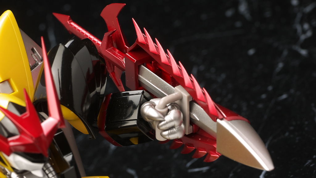 龍王丸ほどではないにしろ全体の質感など非常に見栄えよく仕上がっており塗装のはみ出しなどもほとんどなく、角や爪、シールドなど各部の尖ったパーツもシャープで見た目に関してはほぼ欠点のない完璧に近い出来に仕上がってました。
