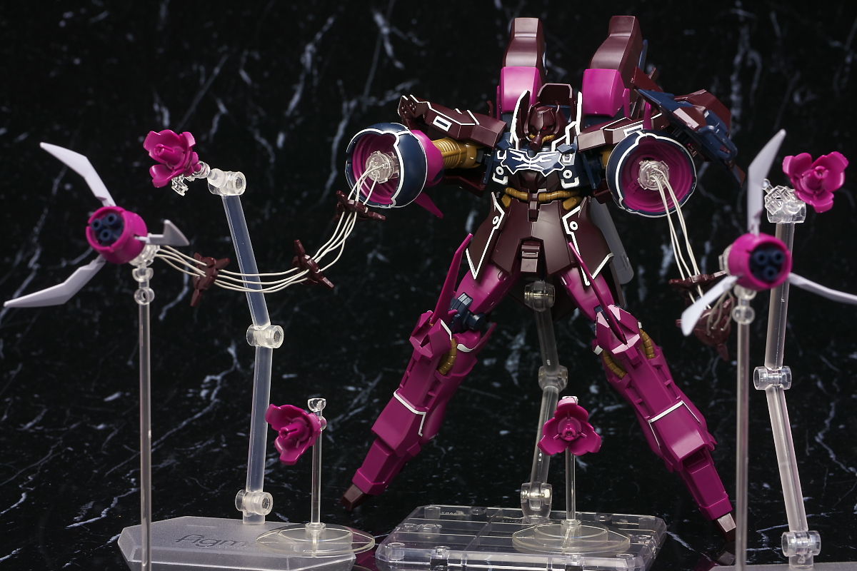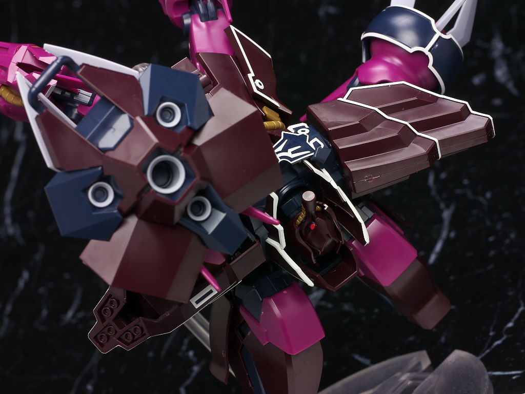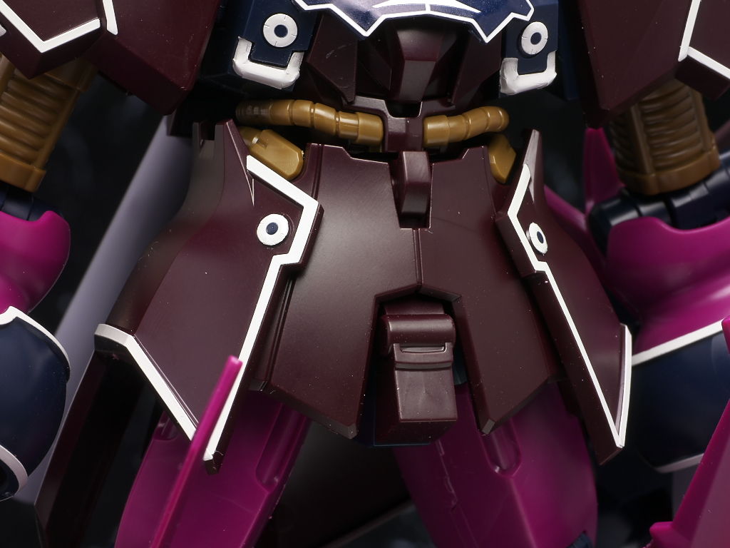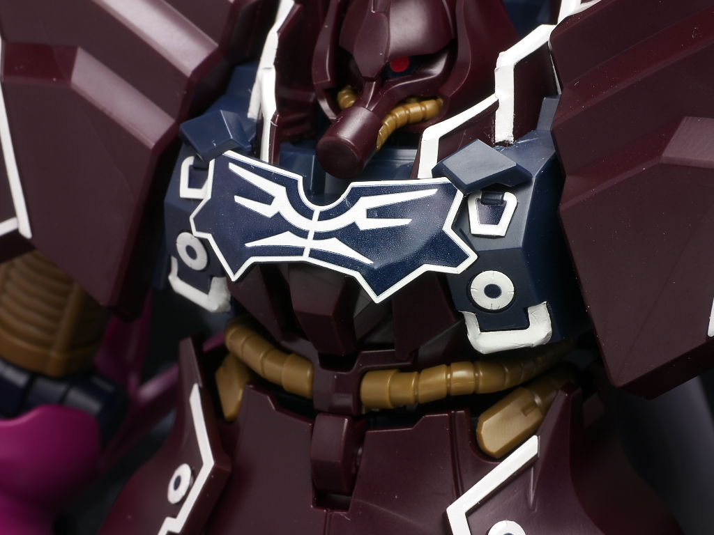 これまでの袖付きの機体同様ラインのほとんどがシールなのと濃い紫部分の成型色が劇中や見本と違った感じになってた点だけ惜しかったですが完成品などでもまだ全くといっていいほど立体化されてない機体なのでいち早く出てくれたのは有難かったです。