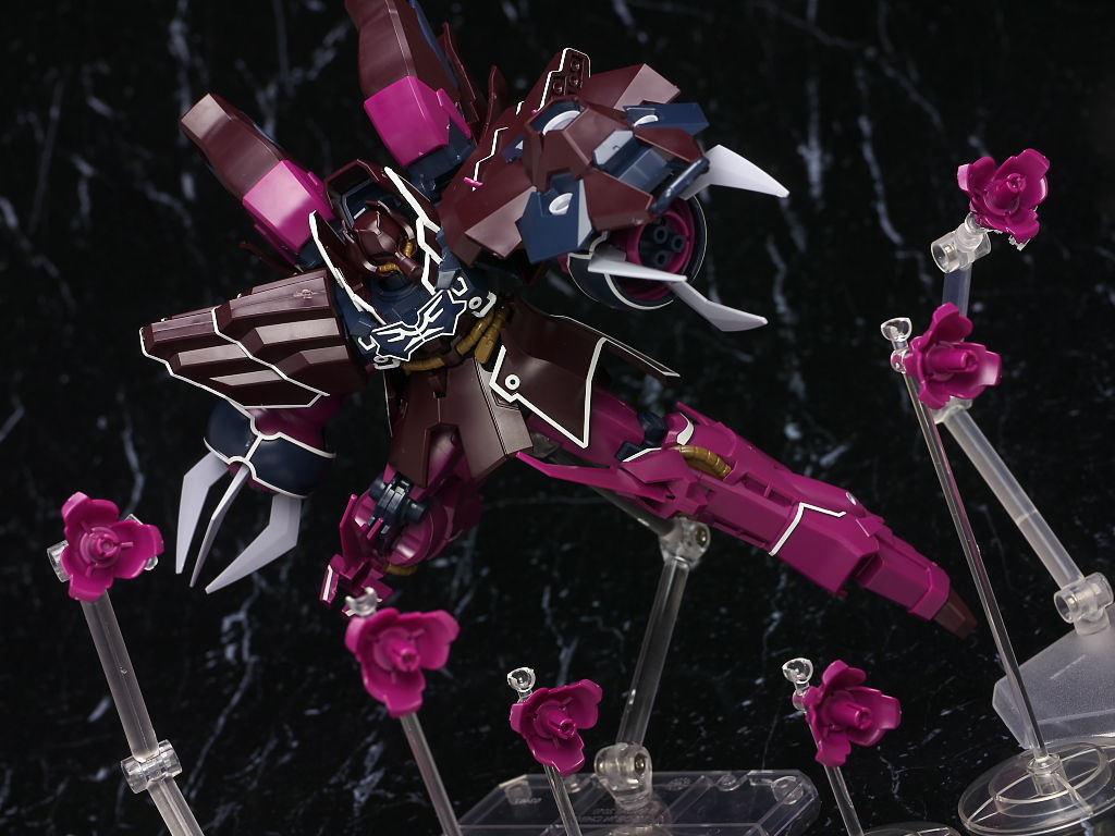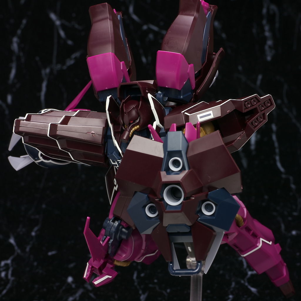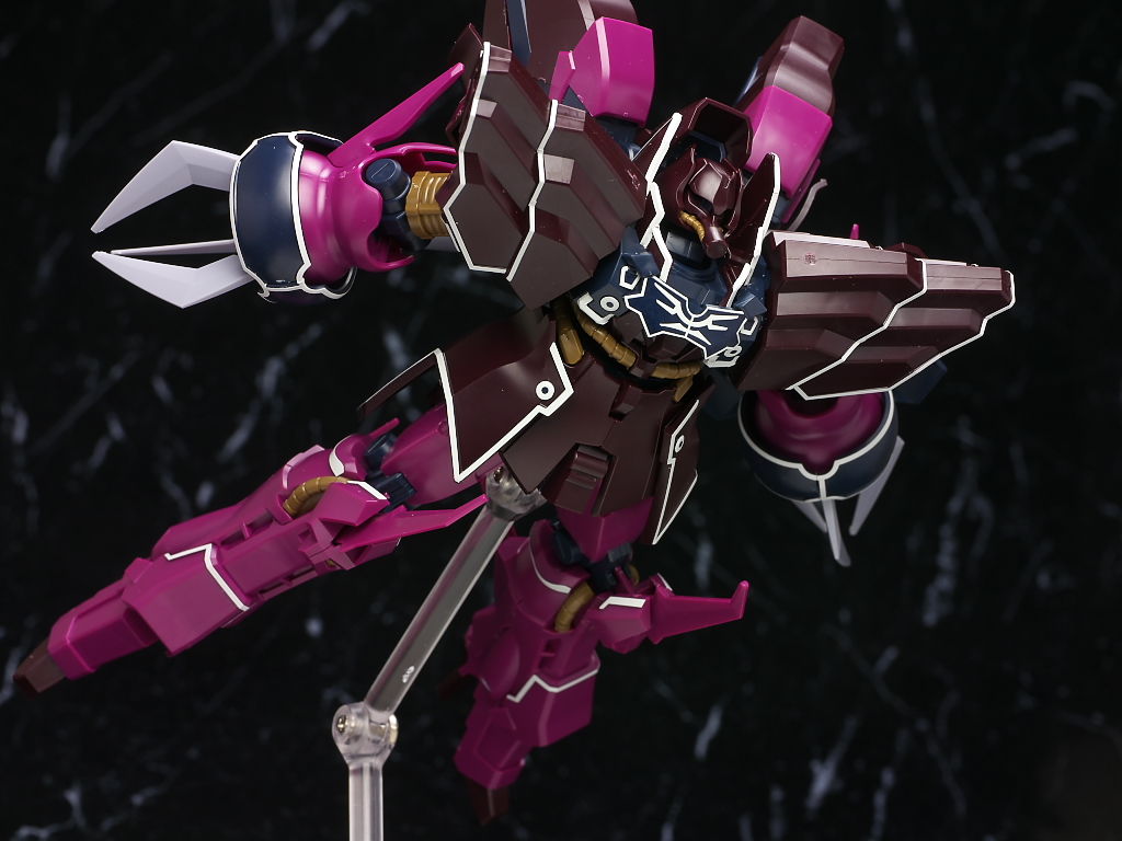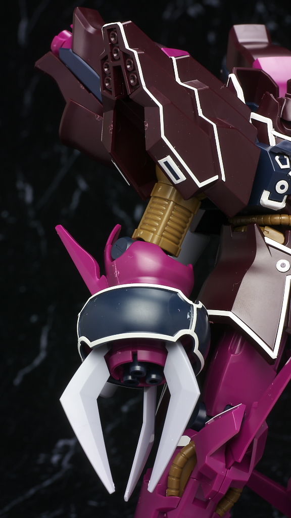 これまでの袖付きの機体同様ラインのほとんどがシールなのと濃い紫部分の成型色が劇中や見本と違った感じになってた点だけ惜しかったですが完成品などでもまだ全くといっていいほど立体化されてない機体なのでいち早く出てくれたのは有難かったです。