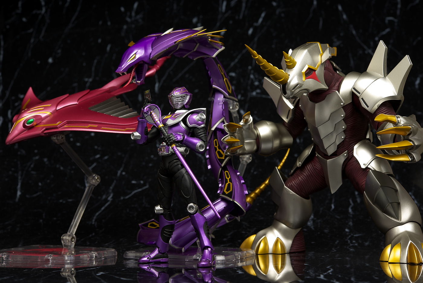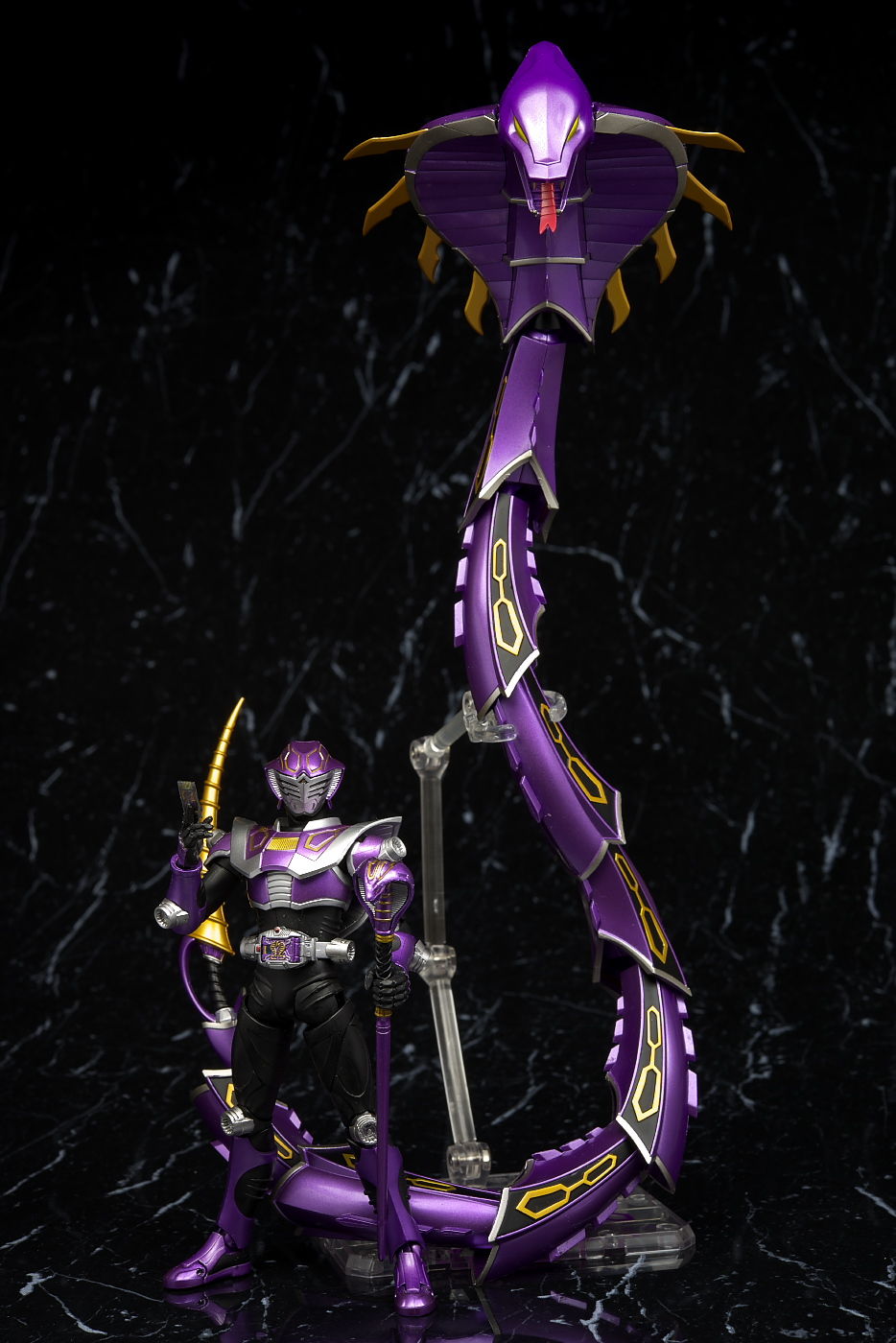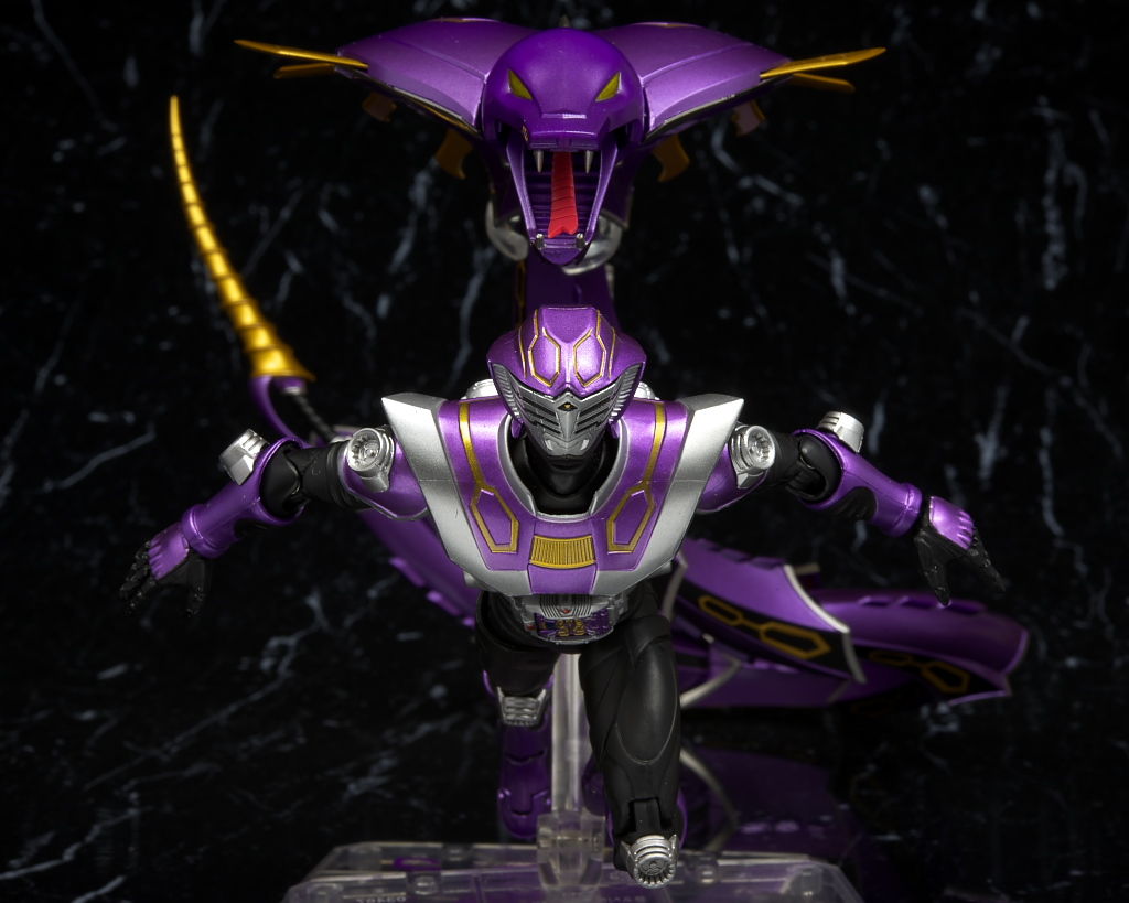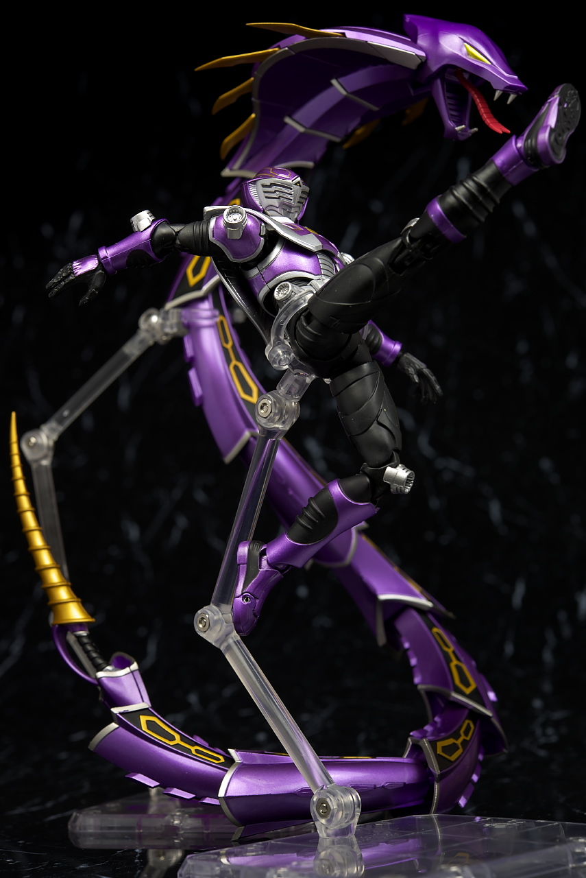ベノスネーカー。頭部と尻尾のベノサーベル以外はドラグレッダーの色違い。スタンドも同じようにクリップで挟む方式。
