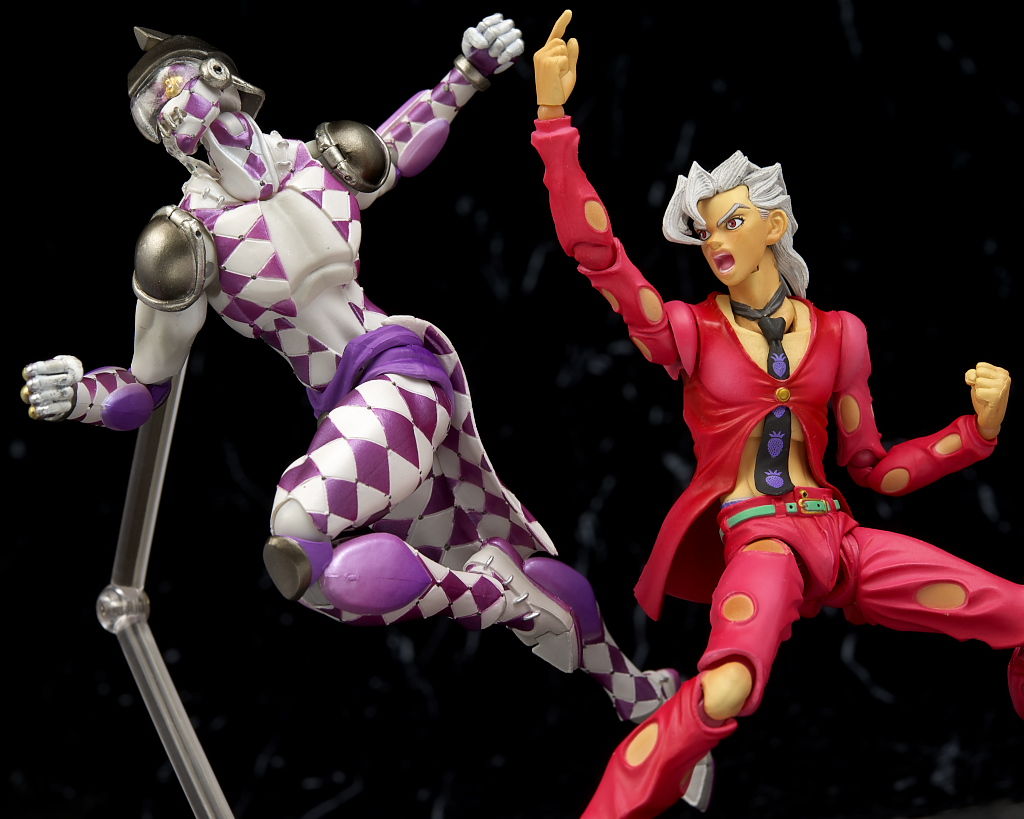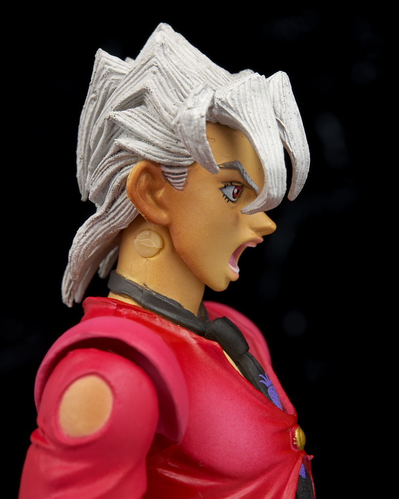 可動は他の5部キャラと変わりないですが、後ろ髪が長めなので上を向く動きだけ他より若干制限されます。