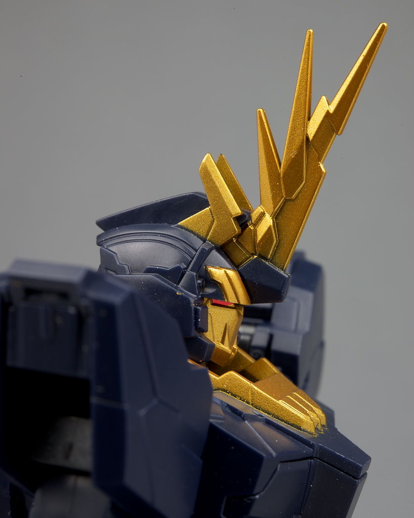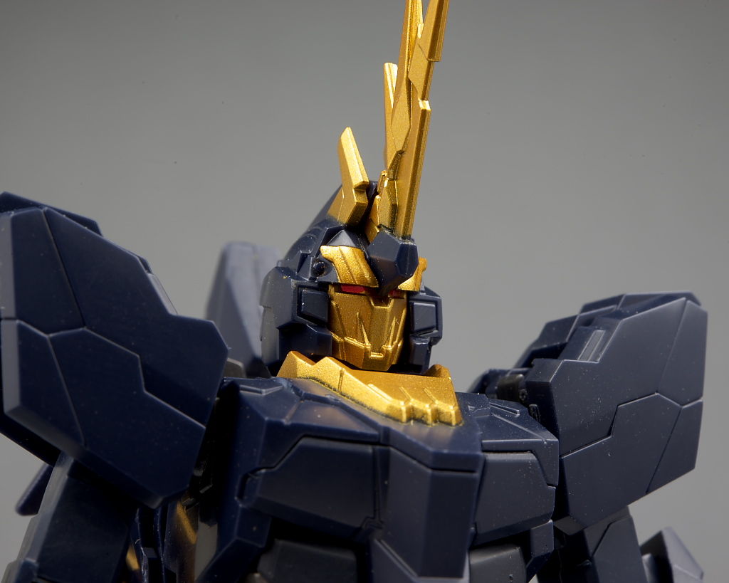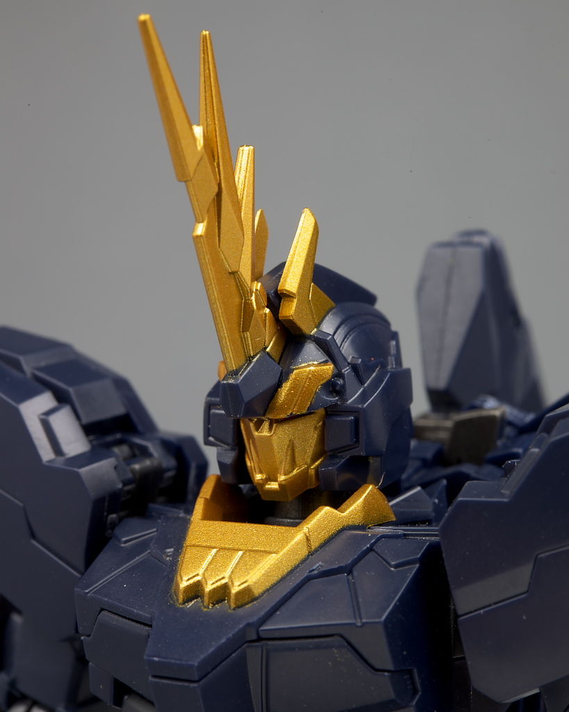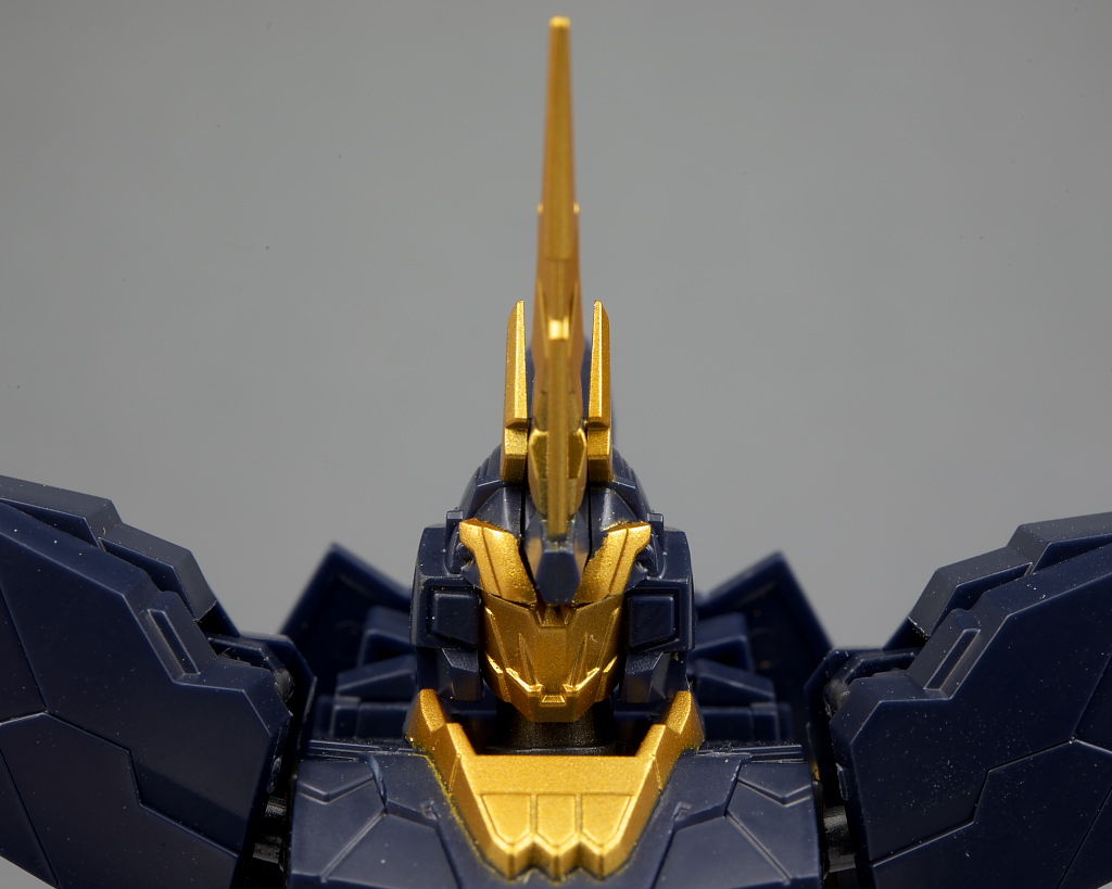 顔。アンテナやマスク部分のディテールなどユニコーン以上に細かく色の違いもあってだいぶ派手な印象に。