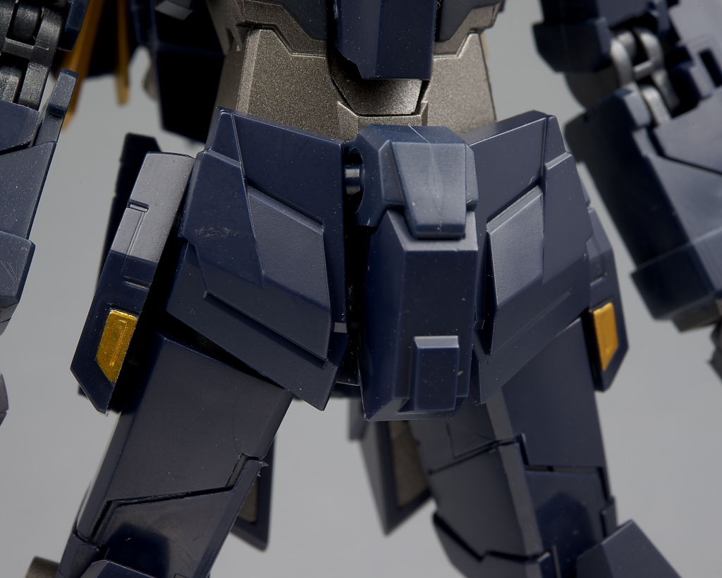 腰回り。腹部パーツは派手な本体に合わせてかメタリック塗装に。