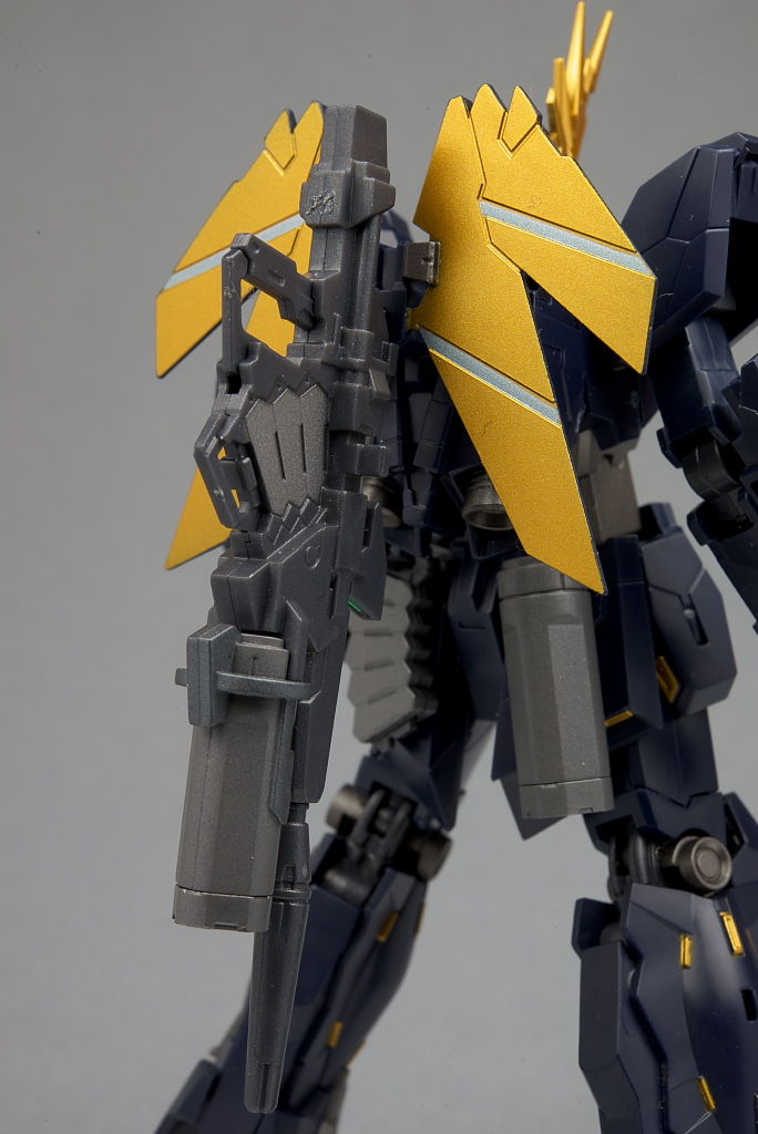 フィンパーツの金は本体とは微妙に異なる色味に。ダボの形は同じなのでビームマグナムなどをマウントすることも。