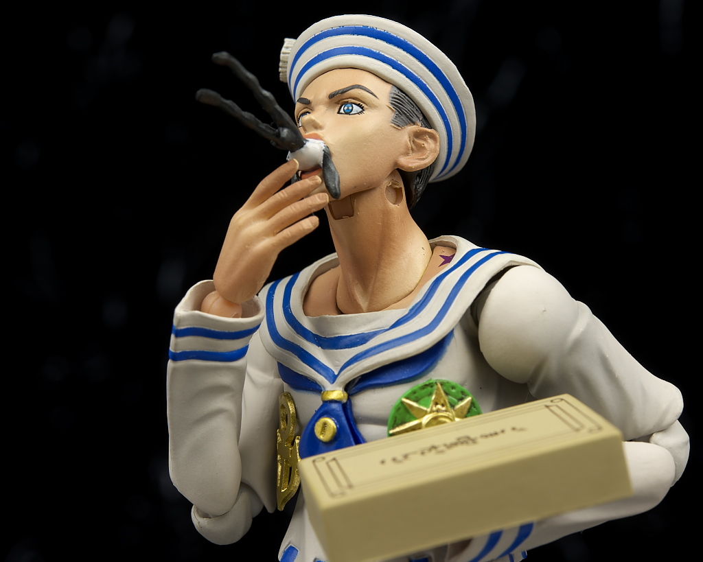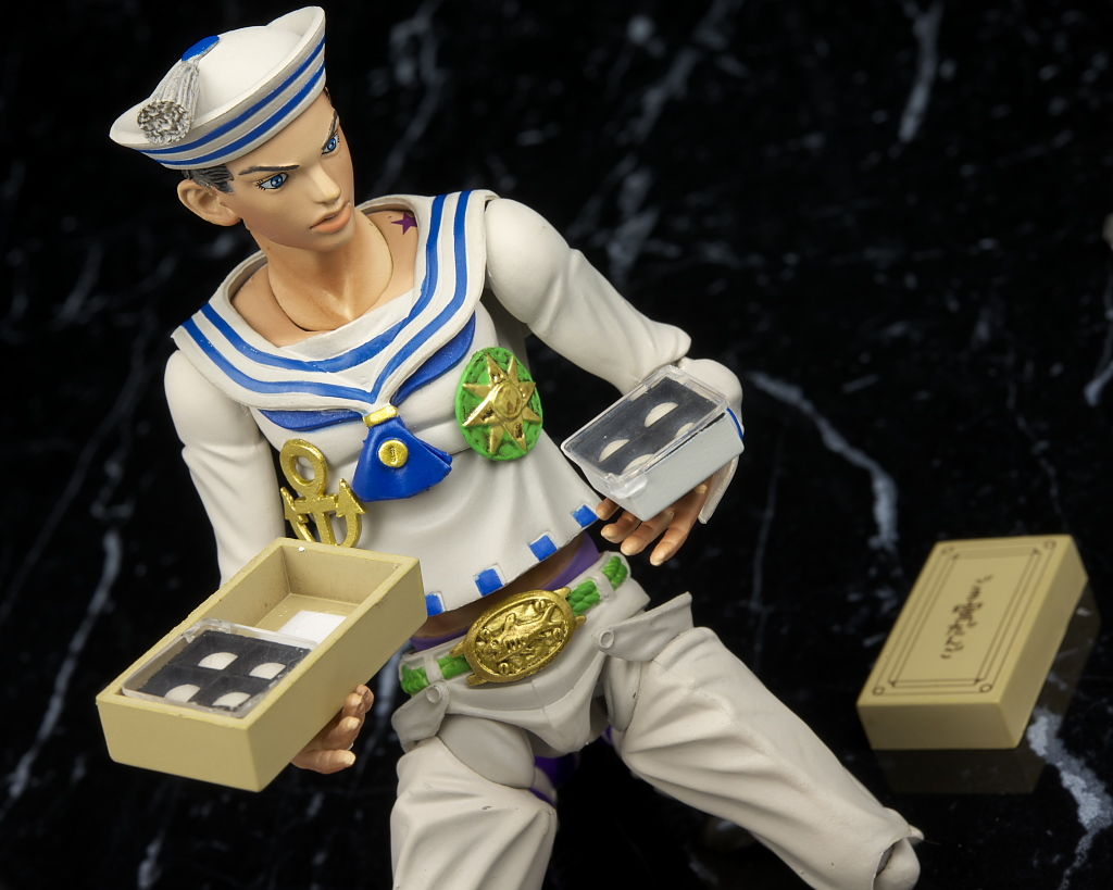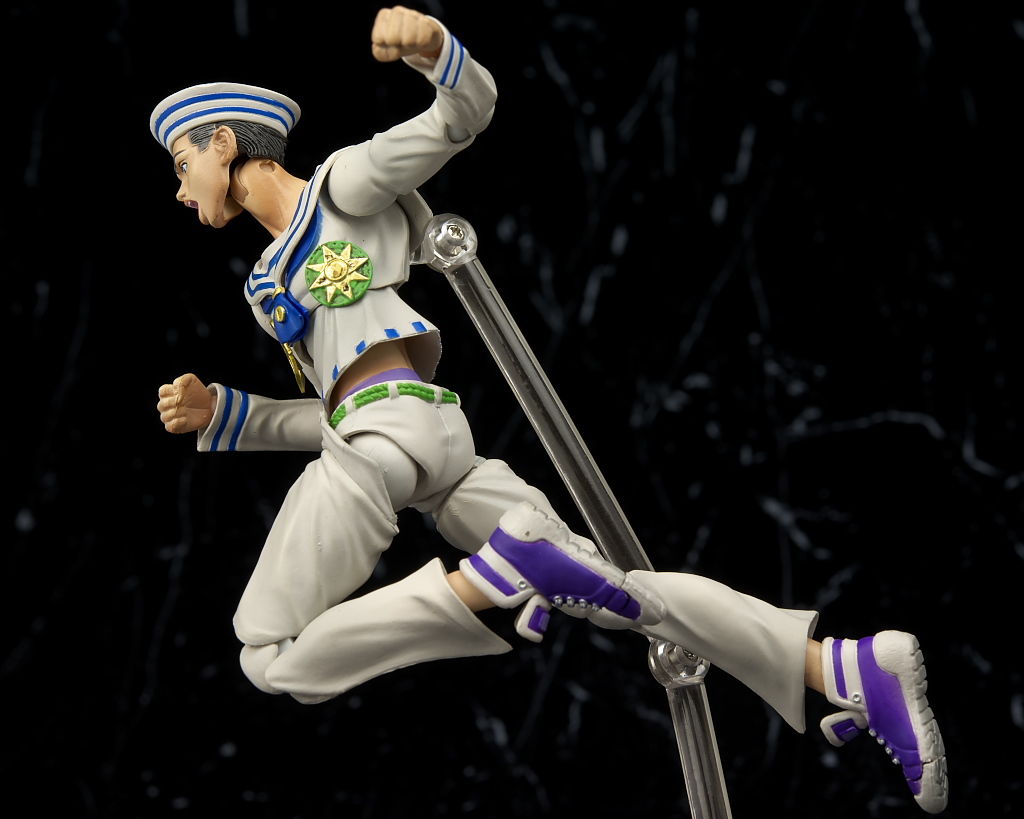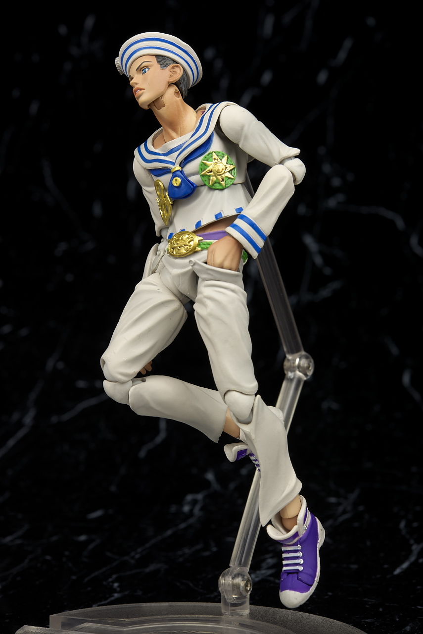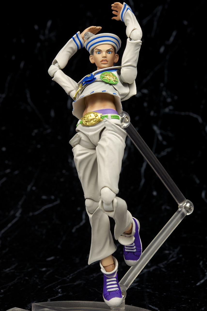 関節なども完成度の高い5部キャラと同じ仕様なので可動範囲が広くて尚且つ動かしやすく、また連載中ということもあり限定的ではあるもののオプションも充実してて今の段階で出せるものとしてはほぼ完璧といっていい内容になってると思います。