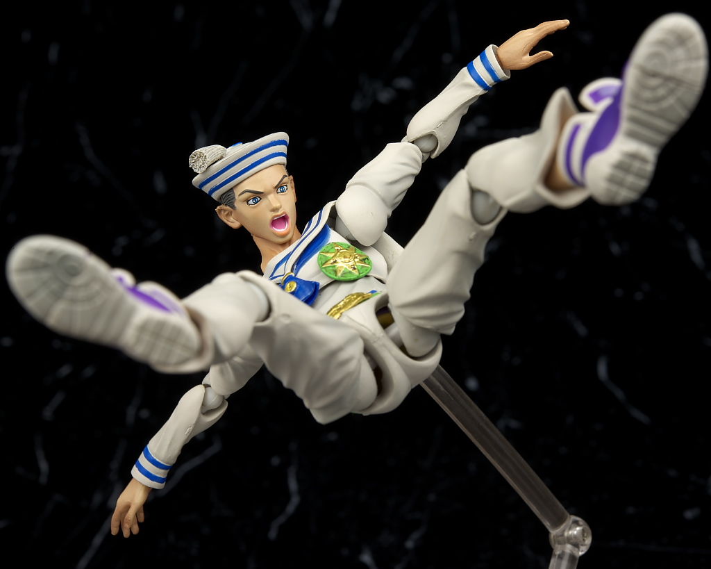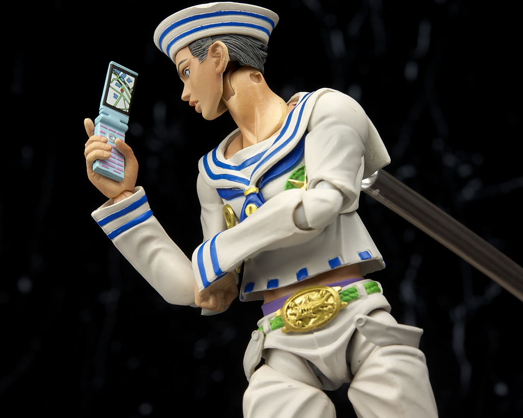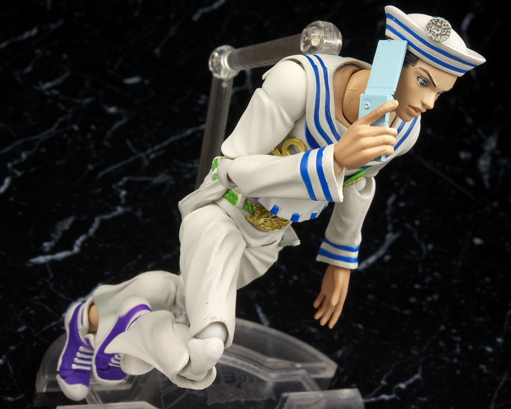 関節の構造などは5部キャラと同じなのでよく動き肘を深く曲げる必要がある電話を耳に当てるポーズも普通に再現出来ます。