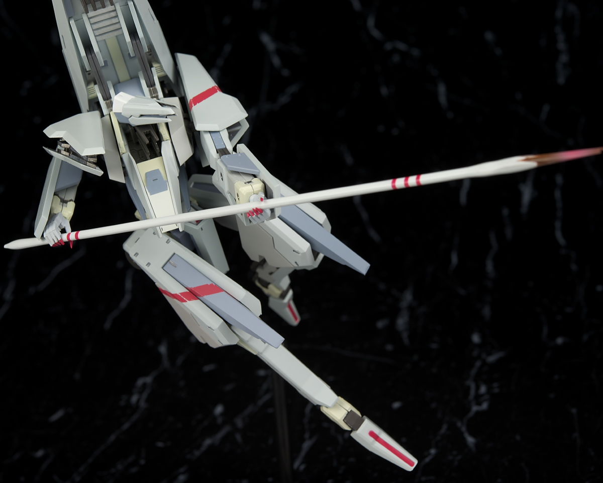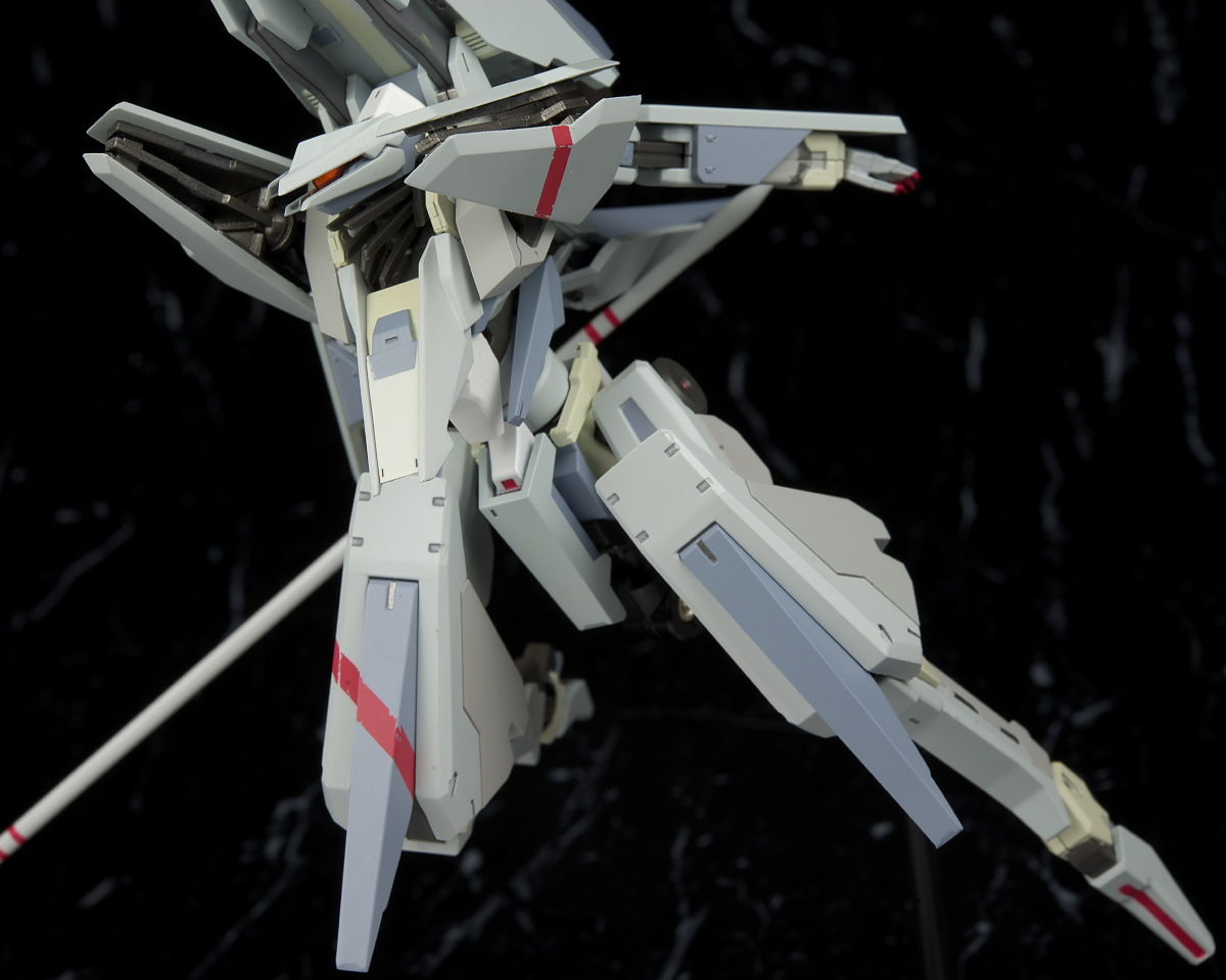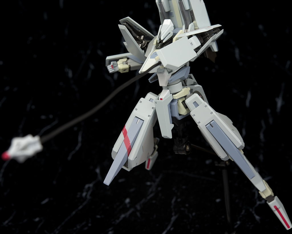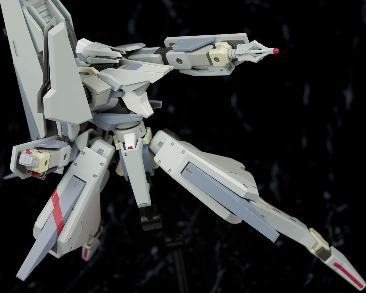可動も肩の干渉と外れやすさだけ惜しかったもののそこ以外は物凄く動くので遊びやすく、オプションも超高速弾体加速装置など有り得ないような物から原作でそんなに目立ってない武装まで幅広く付属するので原作ファンも納得の内容になってると思います。