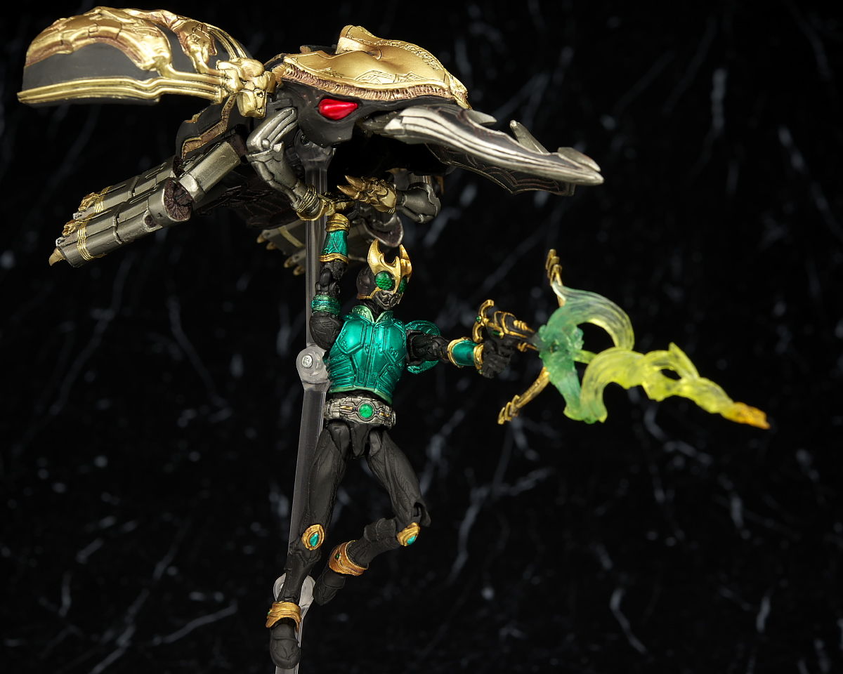昆虫そのものみたいなデザインが極魂と相性良くて細部までリアルに造形されており、塗装も金色が鮮やかで見栄え良く、焦げなどもリアルに再現されてて非常に見栄え良く仕上がってました。