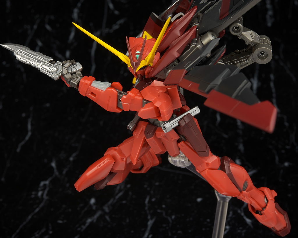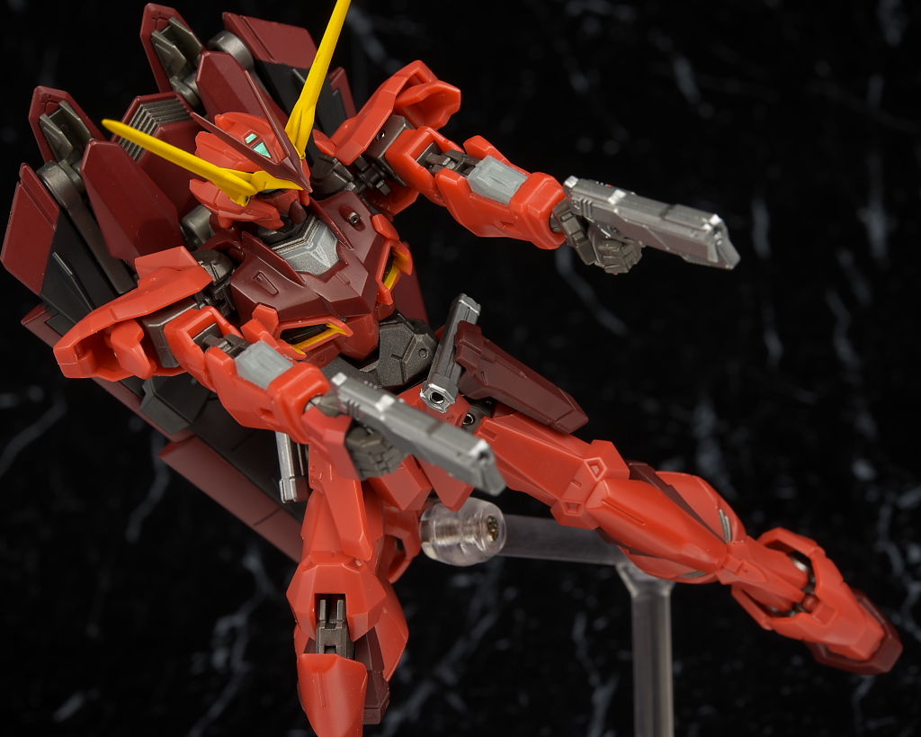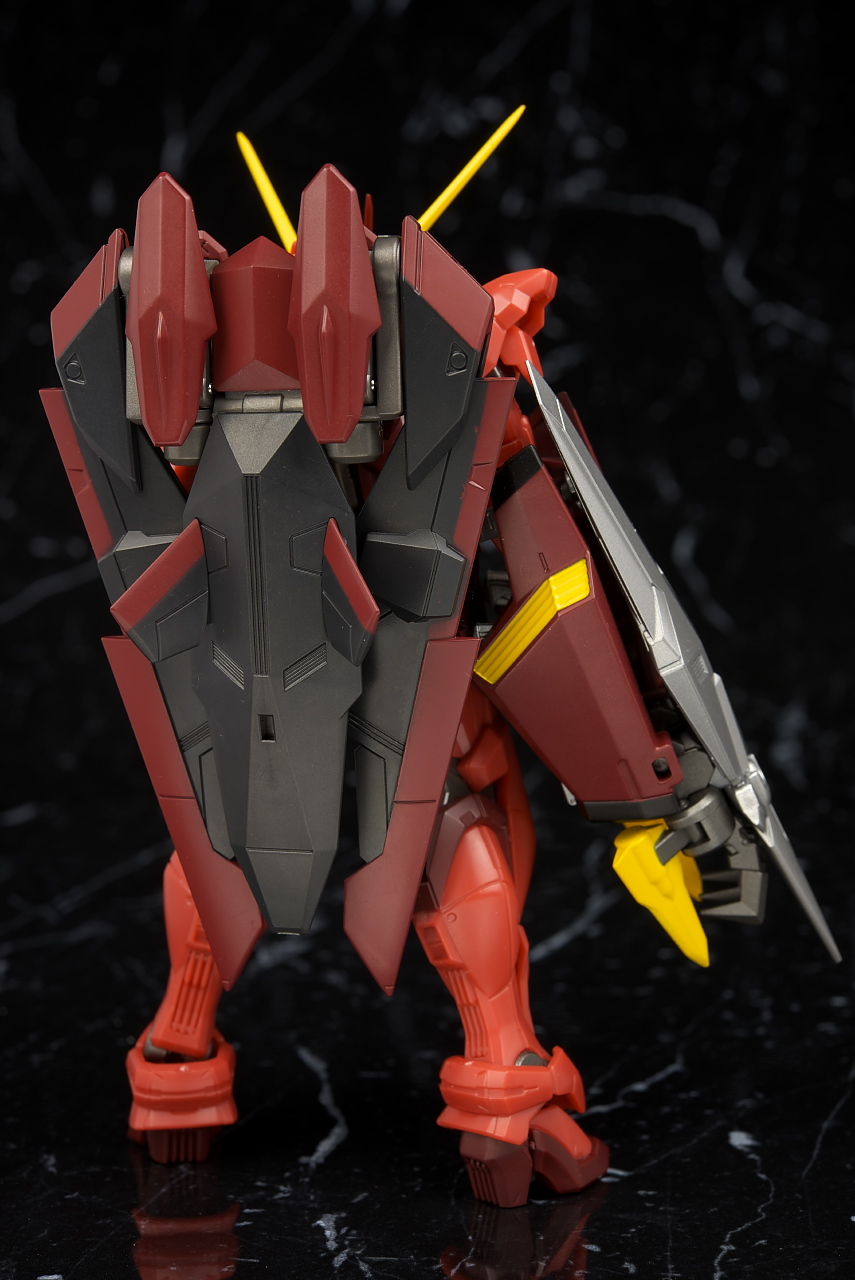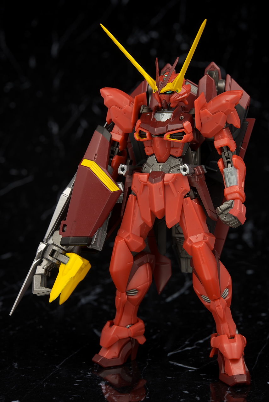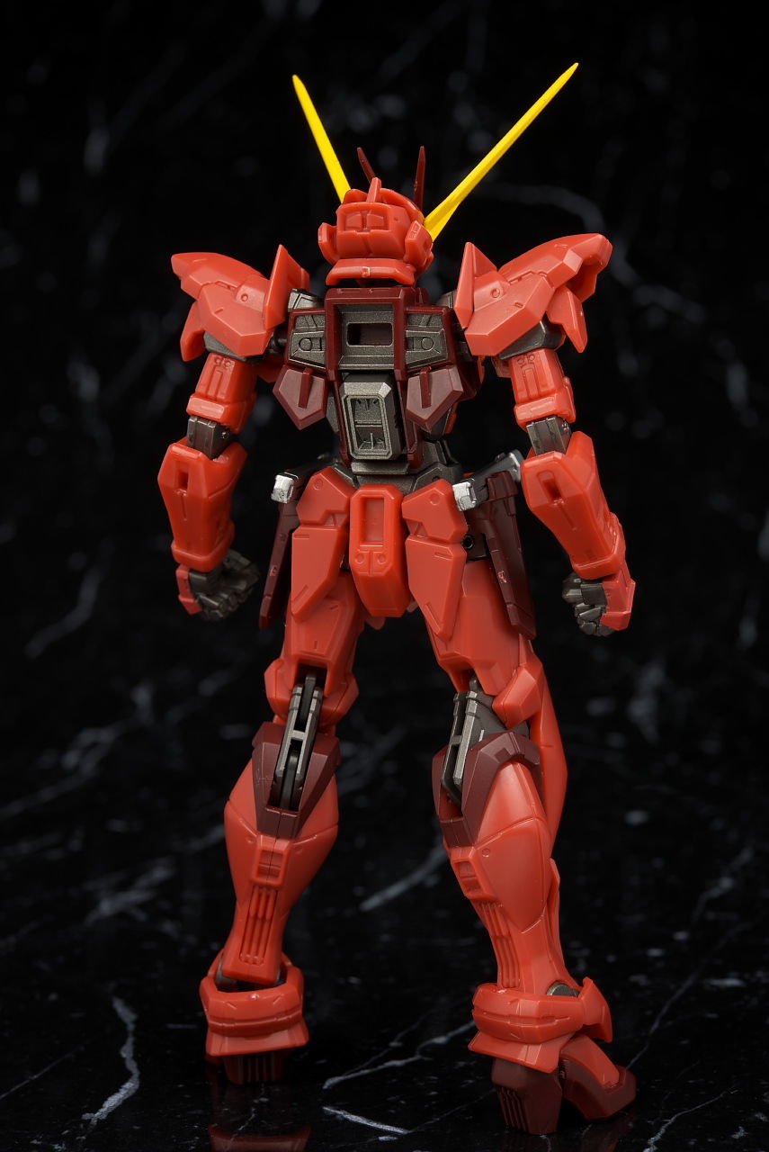 全身。プロポーションはこれまでのSEED系同様細身。見本に比べると赤が薄めで質感が少し安っぽく見える印象。