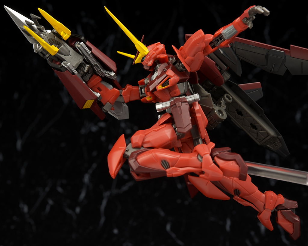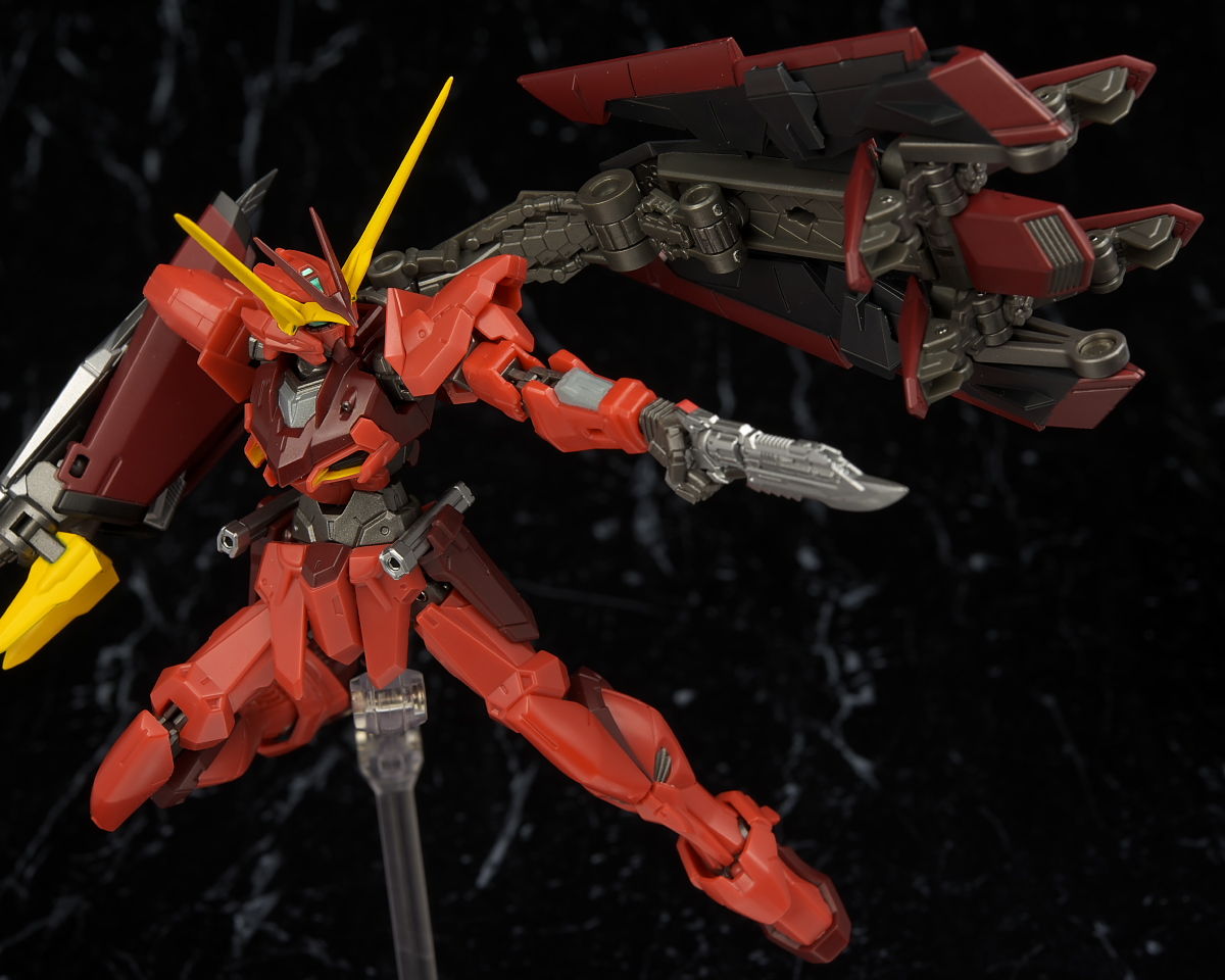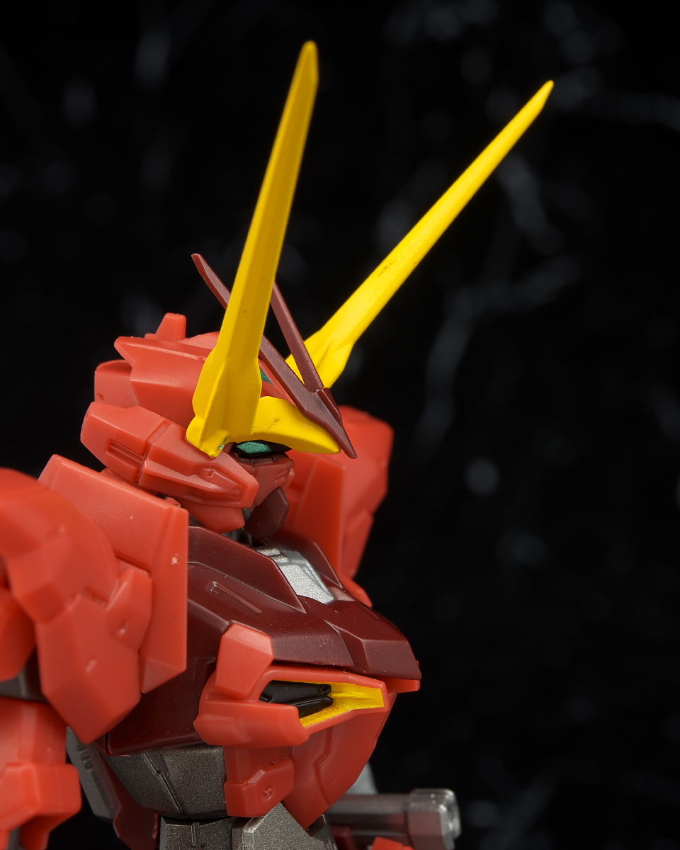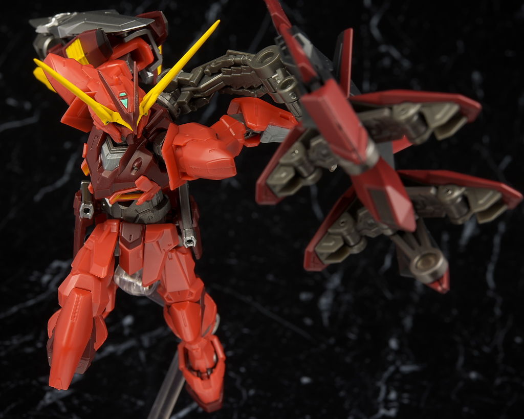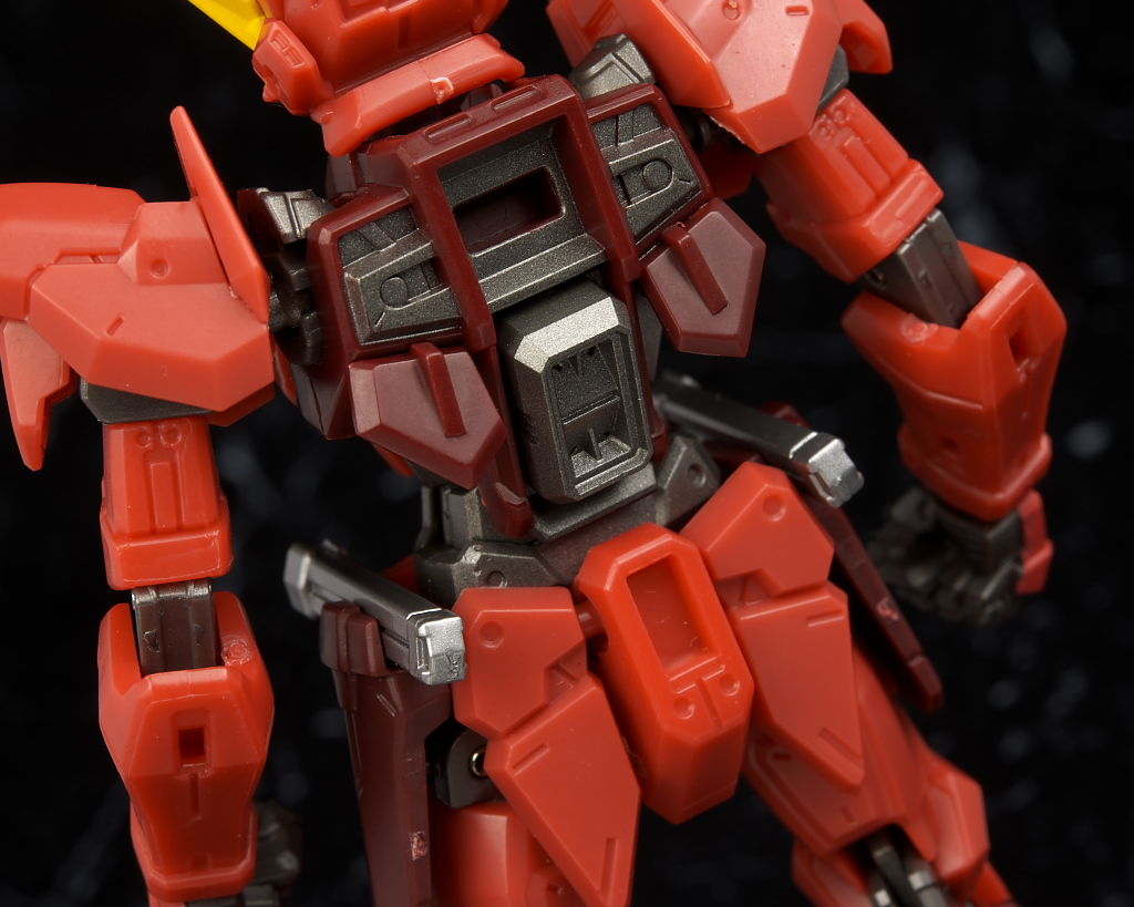 全身。プロポーションはこれまでのSEED系同様細身。見本に比べると赤が薄めで質感が少し安っぽく見える印象。