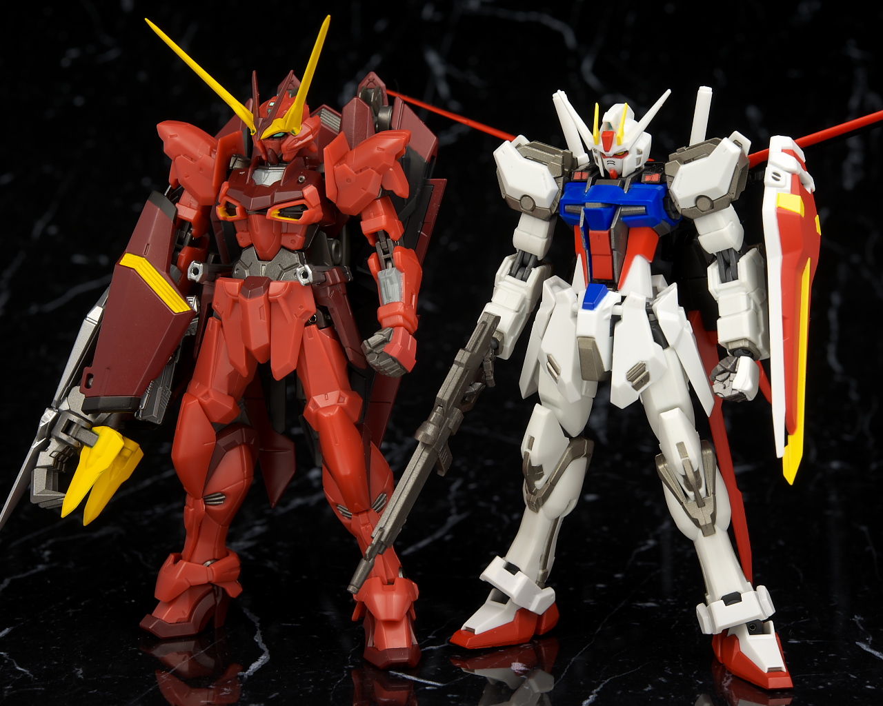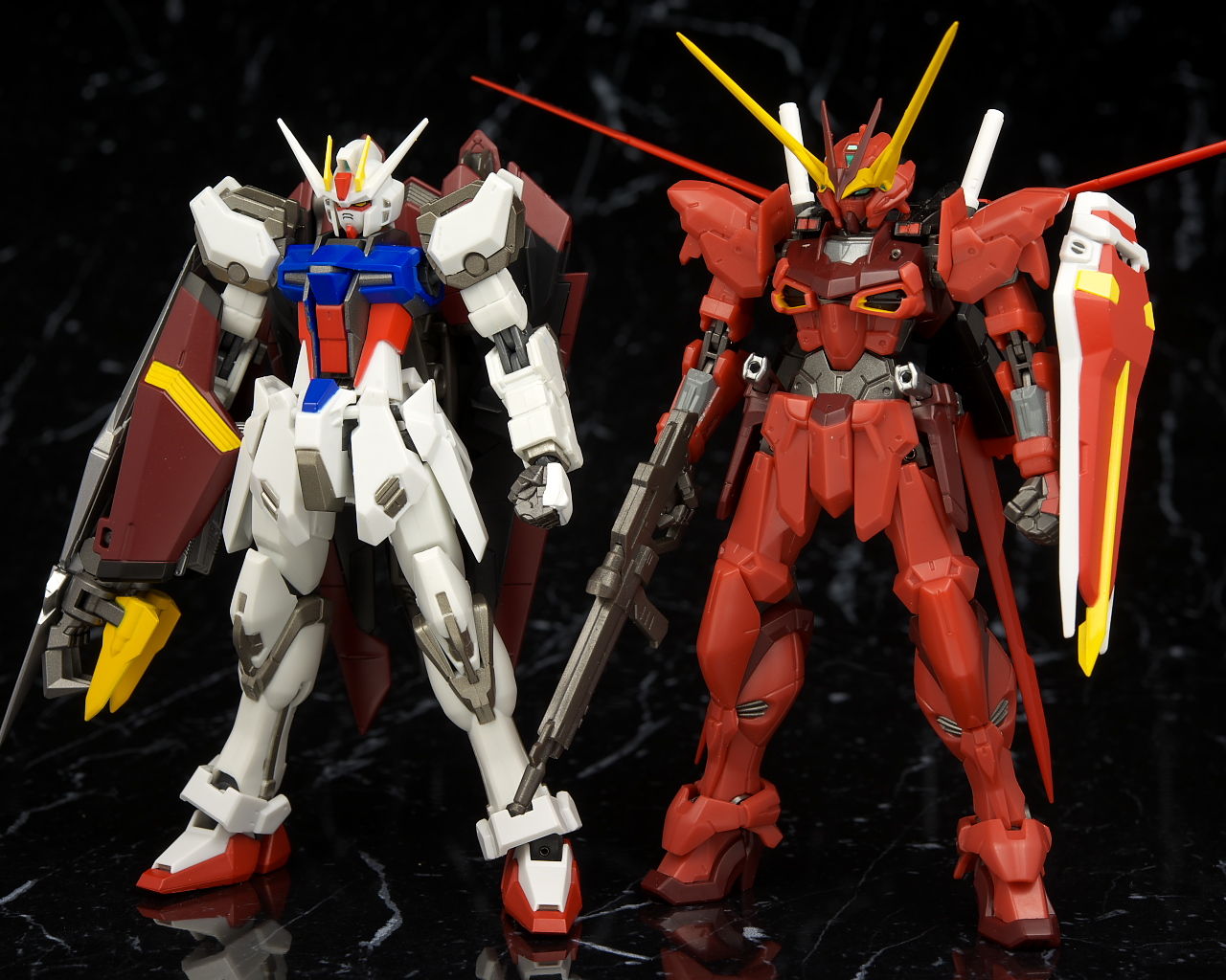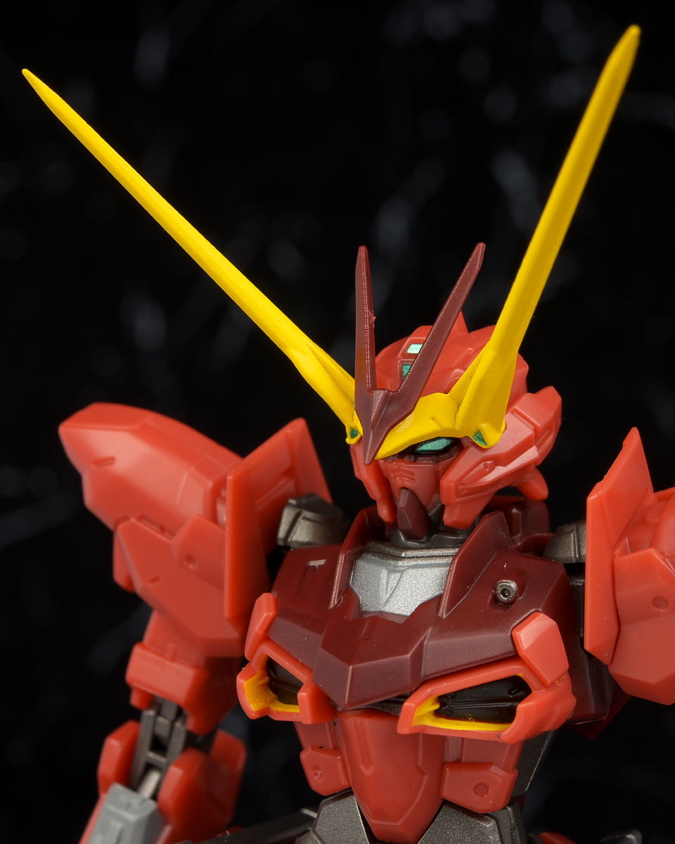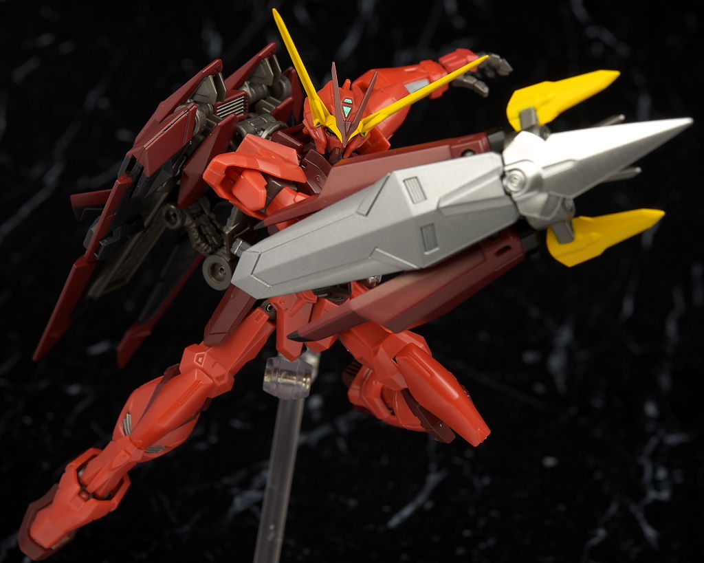 全身。プロポーションはこれまでのSEED系同様細身。見本に比べると赤が薄めで質感が少し安っぽく見える印象。