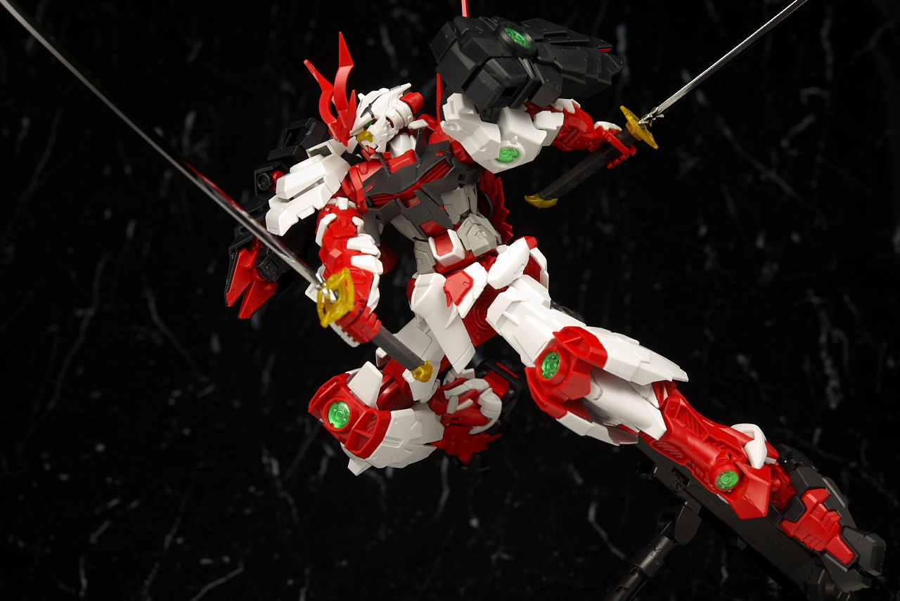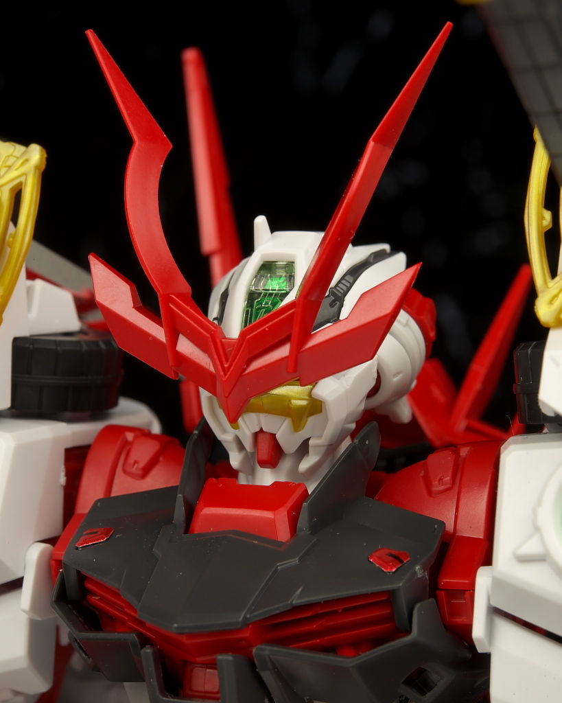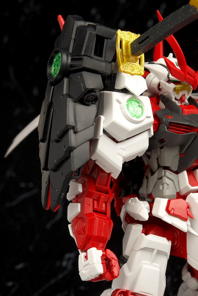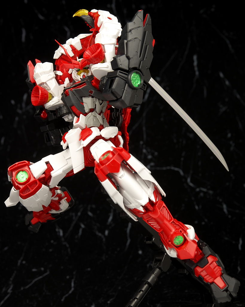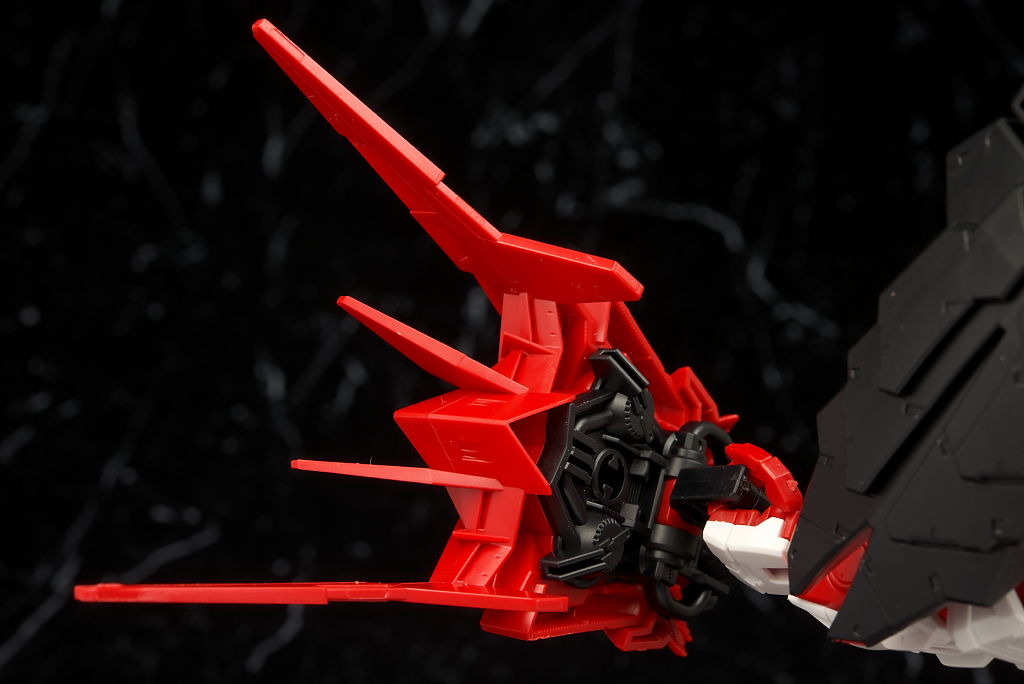 最新のRM Ver.が使われたビルドストライクほど新しくはないのでそちらに比べると多少落ちる面はあるもののこちらの元になってるアストレイもそんなに古くはないのでプロポーションなどは良好でレンズのクリアパーツ化や刀身のメッキ化などHGより色々グレードアップされており非常に格好良かったです。