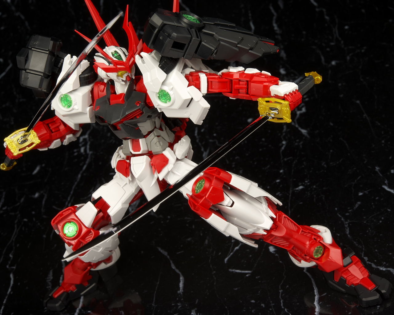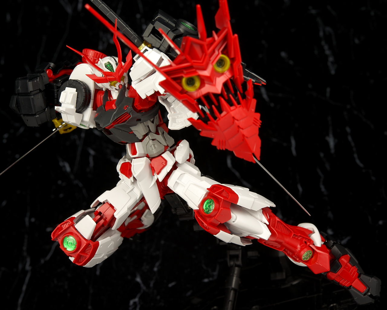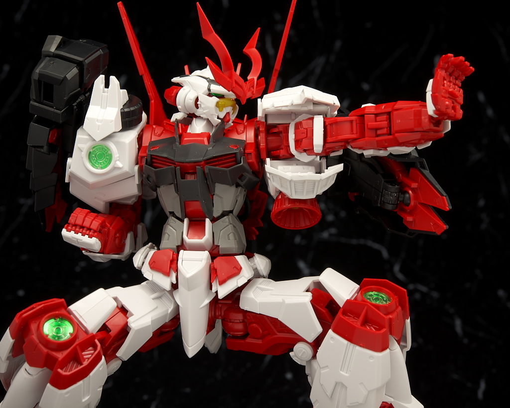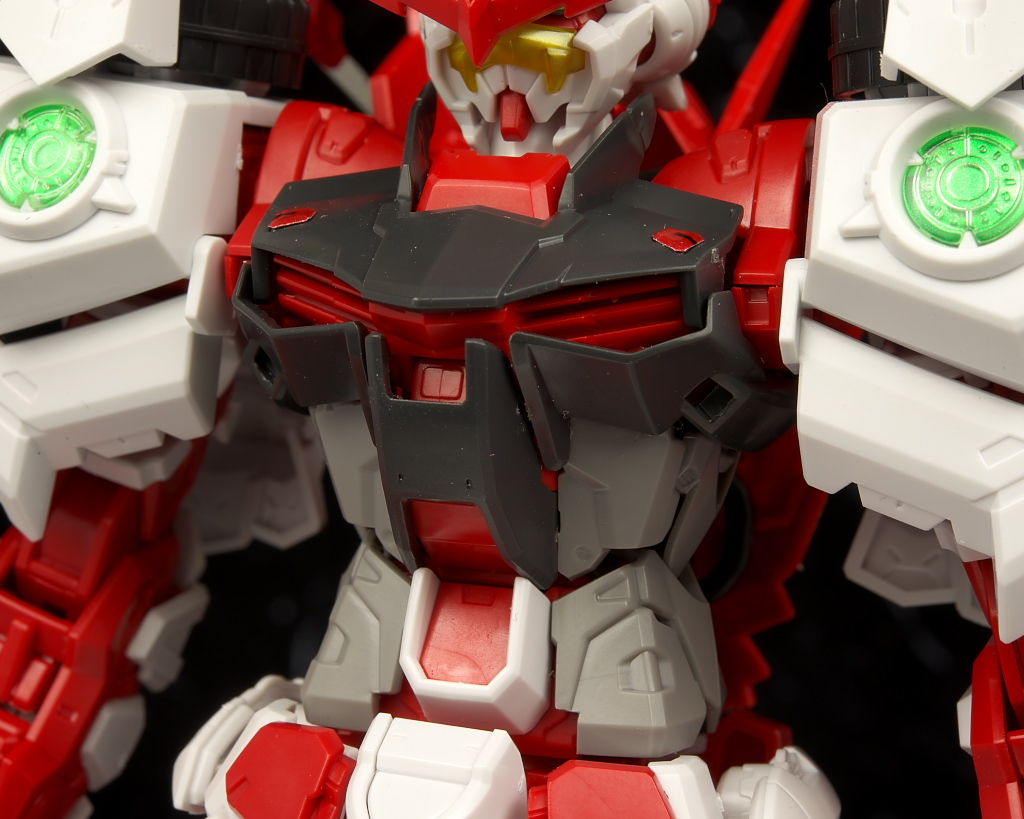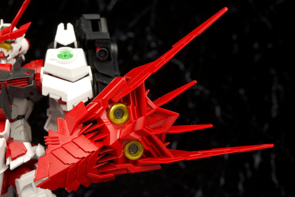 最新のRM Ver.が使われたビルドストライクほど新しくはないのでそちらに比べると多少落ちる面はあるもののこちらの元になってるアストレイもそんなに古くはないのでプロポーションなどは良好でレンズのクリアパーツ化や刀身のメッキ化などHGより色々グレードアップされており非常に格好良かったです。