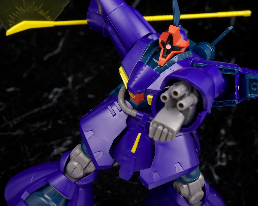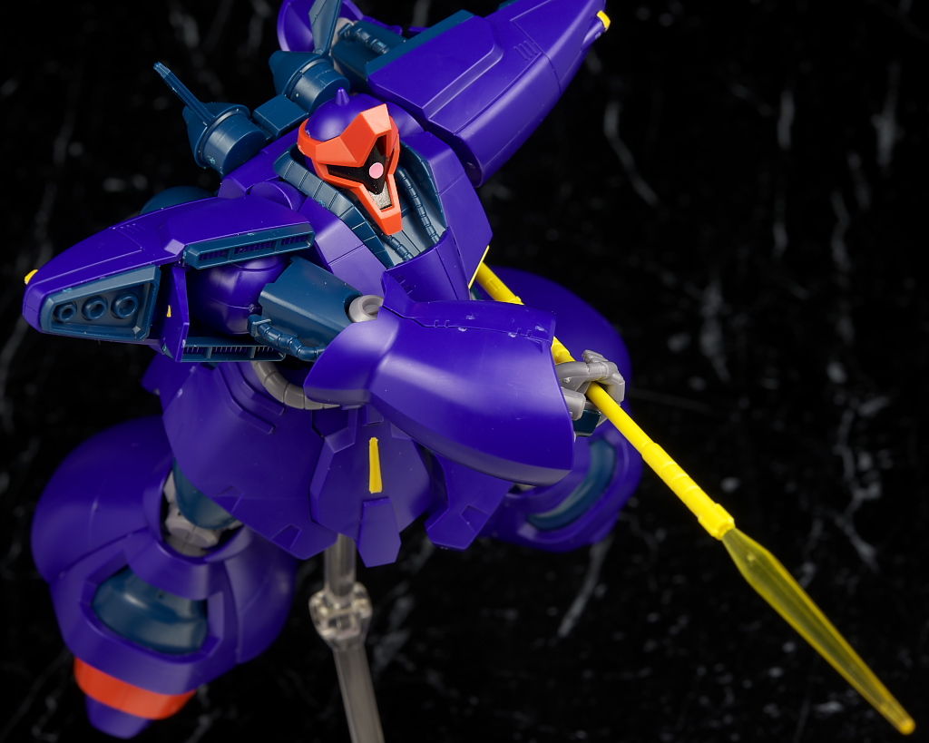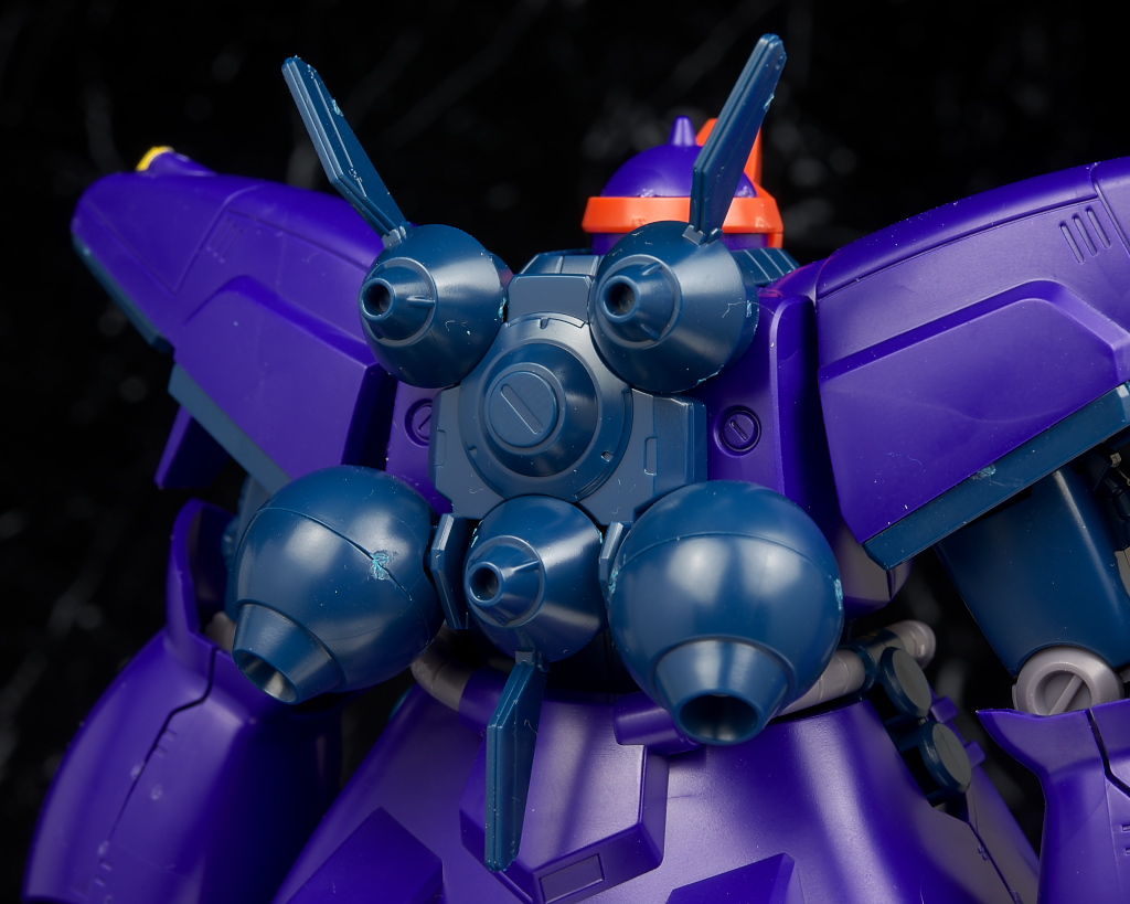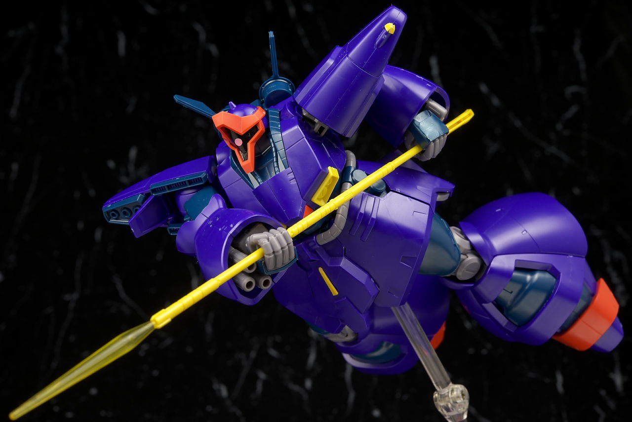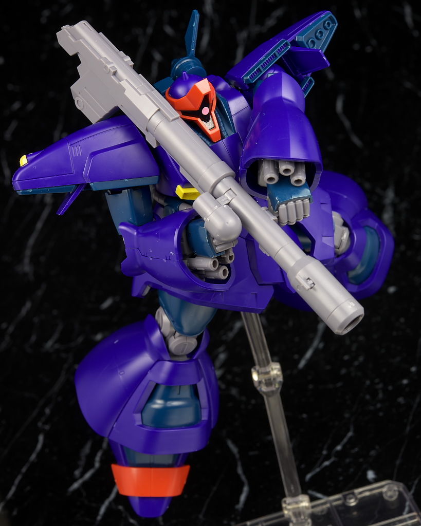 可動は股関節回りや接地性など下半身がいまいちでそんなにグリグリ遊べる感じではないですが、そんなに動く印象のある機体ではないのでそこまで気にならずビームライフルがない点は惜しかったものの武装も比較的多くて遊びの面でもわりと充実した内容になってると思います。