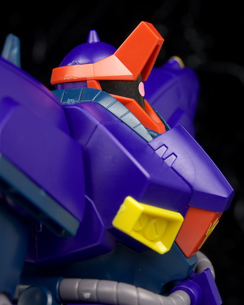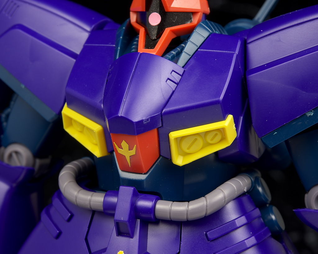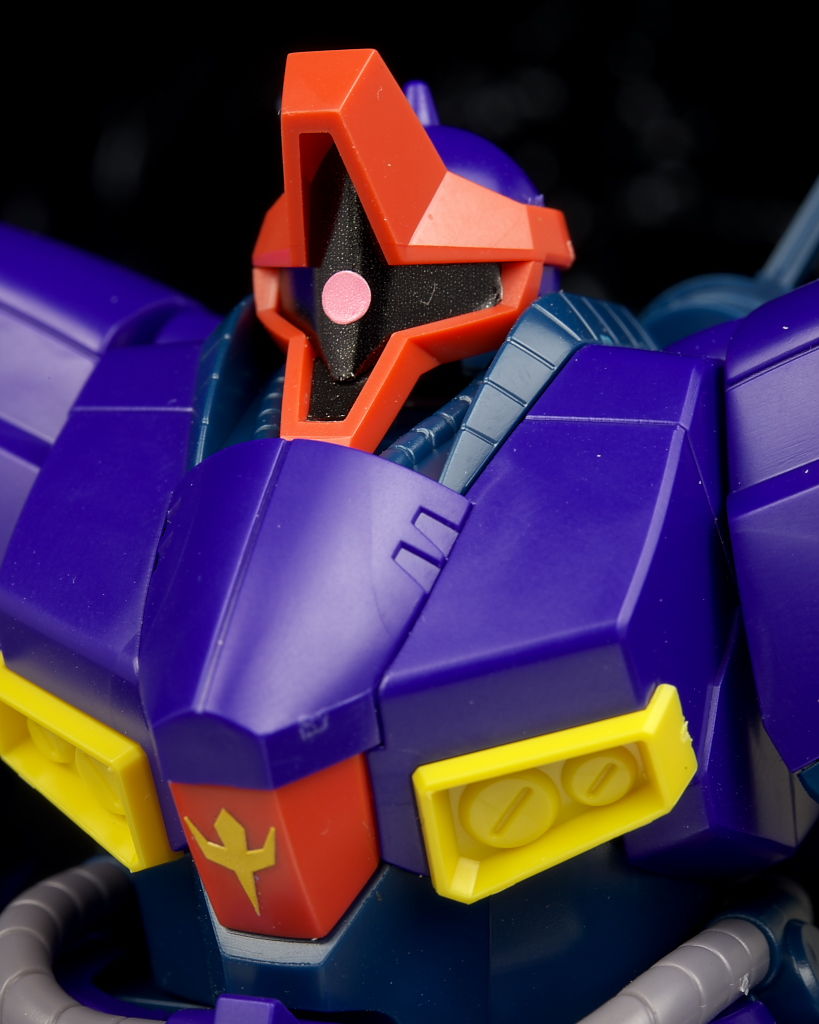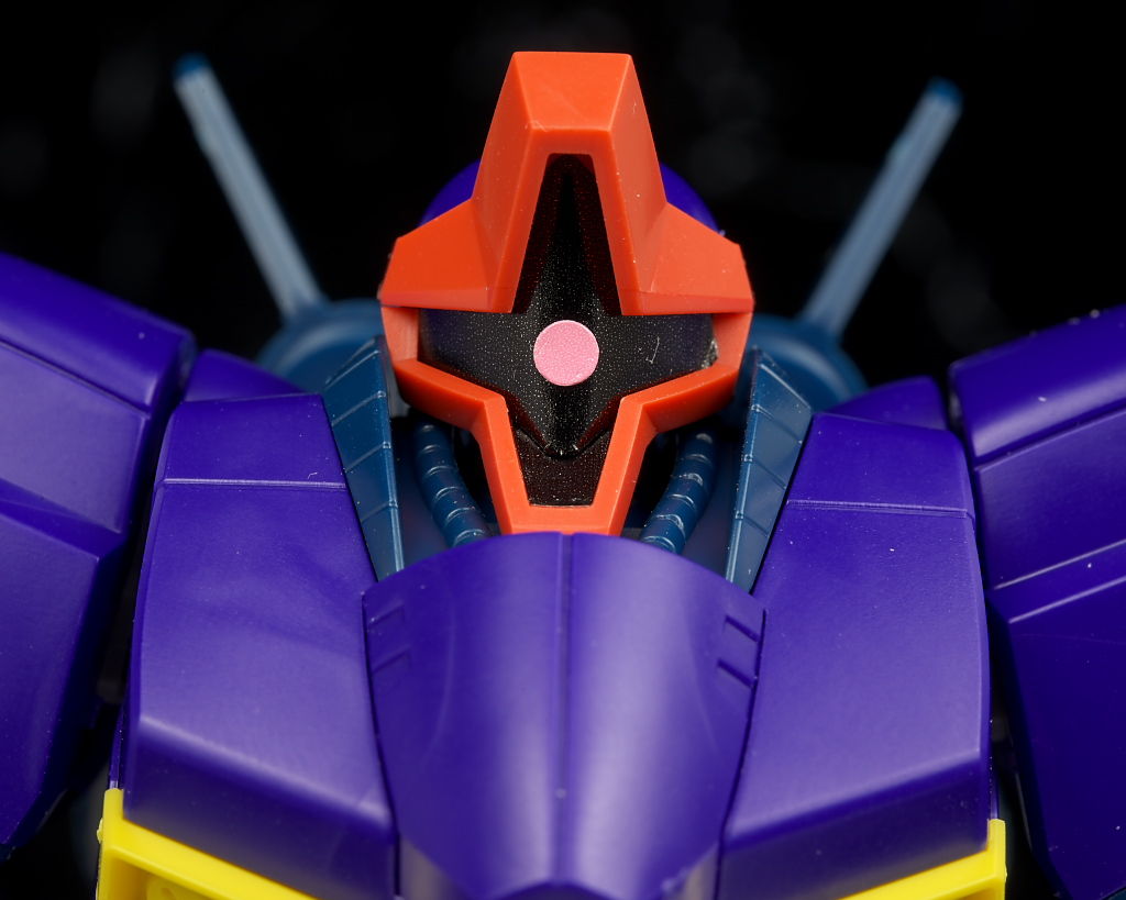 顔。モノアイは黒、ピンク部分ともにシールで可動ギミックなどはなし。